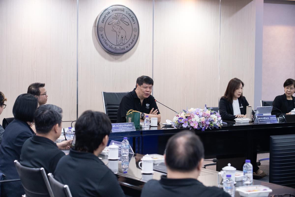 ผู้ช่วยศาสตราจารย์ ทศพร พิชัยยา รองอธิการบดีมหาวิทยาลัยเชียงใหม่ ให้การต้อนรับ ผู้ช่วยศาสตราจารย์ ดร.สุรัฐ ขวัญเมือง รองคณบดีฝ่ายบริหาร คณะวิศวกรรมศาสตร์ จุฬาลงกรณ์มหาวิทยาลัย พร้อมคณะเจ้าหน้าที่จากคณะวิศวกรรมศาสตร์ ในโอกาสที่มาศึกษาดูงาน และร่วมแลกเปลี่ยนเรียนรู้งานในด้านการสื่อสารองค์กร และด้านพันธกิจสากล โดยมี ผู้ช่วยศาสตราจารย์ ดร.อฬิญญา พงษ์วาท ผู้อำนวยการศูนย์สื่อสารองค์กรและนักศึกษาเก่าสัมพันธ์ และ คุณกัฏติมา ประสิทธิ์อยู่ศีล ผู้อำนวยการศูนย์บริหารพันธกิจสากล ร่วมแลกเปลี่ยนเรียนรู้และบรรยายสรุป ณ ห้องประชุมพระยาศรีวิสารวาจา อาคารสำนักงานมหาวิทยาลัย 1 มหาวิทยาลัยเชียงใหม่ เมื่อวันพฤหัสบดีที่ 5 กุมภาพันธ์ 2569