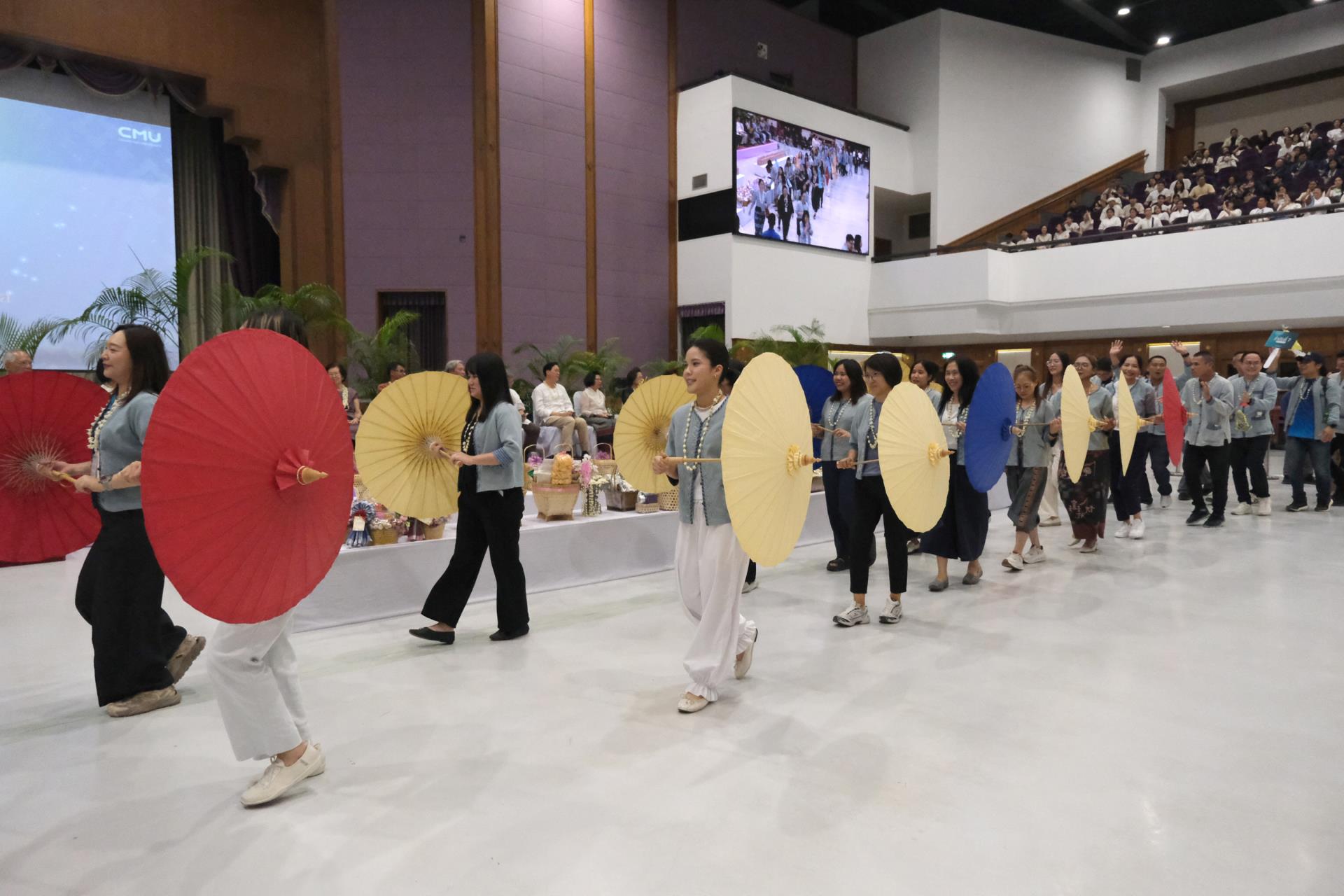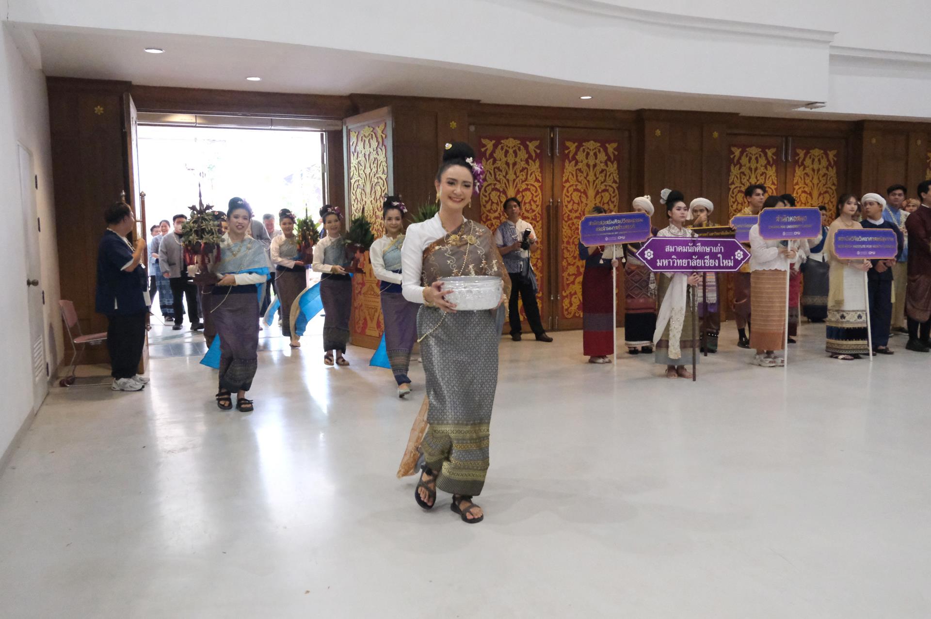 ภายในพิธีมีการแสดงศิลปวัฒนธรรมพื้นบ้านล้านนา การมอบรางวัลการประกวดขบวนดำหัวและการแต่งกายพื้นเมือง การกล่าวสมาคารวะและขอพรเนื่องในโอกาสวันขึ้นปีใหม่เมืองจากอดีตอธิการบดีและคณาจารย์อาวุโสของมหาวิทยาลัย ตลอดจนพิธีรดน้ำดำหัวเพื่อความเป็นสิริมงคลแก่ผู้เข้าร่วมงาน ซึ่งนับเป็นอีกหนึ่งโอกาสสำคัญที่ช่วยเสริมสร้างความผูกพันระหว่างคณาจารย์และบุคลากรมหาวิทยาลัย และสะท้อนถึงพลังความร่วมมือของชาว CMUBS ในการธำรงรักษาและส่งต่อคุณค่าทางวัฒนธรรมสู่คนรุ่นต่อไปอย่างยั่งยืน