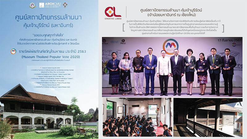 1. พิพิธภัณฑ์เรือนโบราณล้านนา มช. ได้รับรางวัลพิพิธภัณฑ์และแหล่งเรียนรู้ดีเด่น ประจำปี 2563 (Museum Thailand Awards 2020) ประเภทพิพิธภัณฑ์ด้านสังคม ศิลปะและวัฒนธรรมดีเด่น ด้านการอนุรักษ์และสืบสาน
