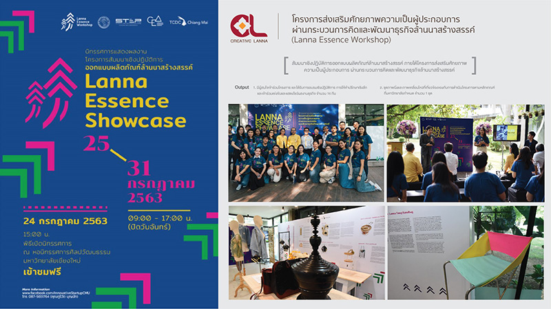 1. โครงการส่งเสริมศักยภาพความเป็นผู้ประกอบการ ผ่านกระบวนการคิดและพัฒนาธุรกิจล้านนาสร้างสรรค์ “Lanna Essence Workshop” (ปั้นคน)