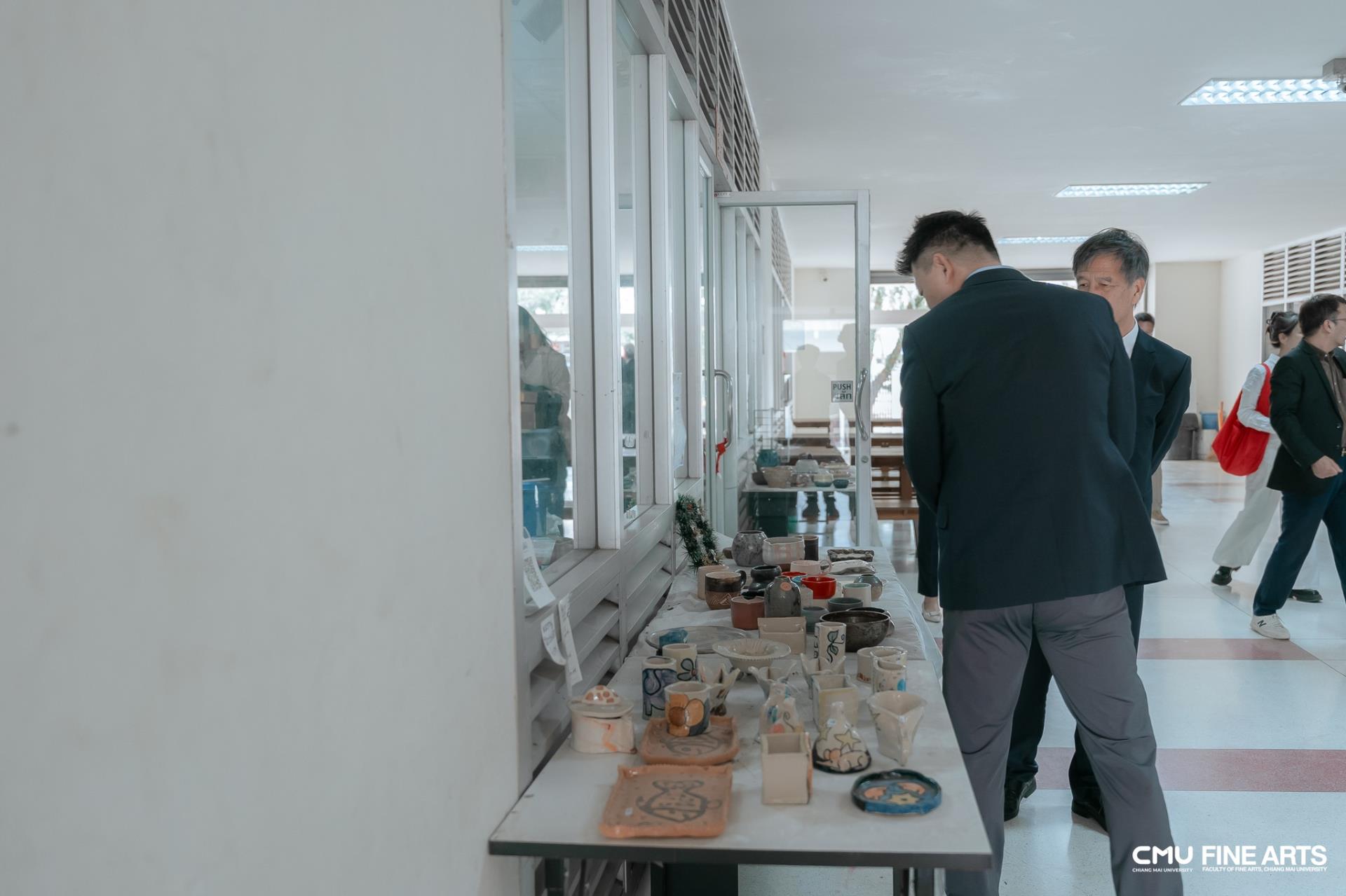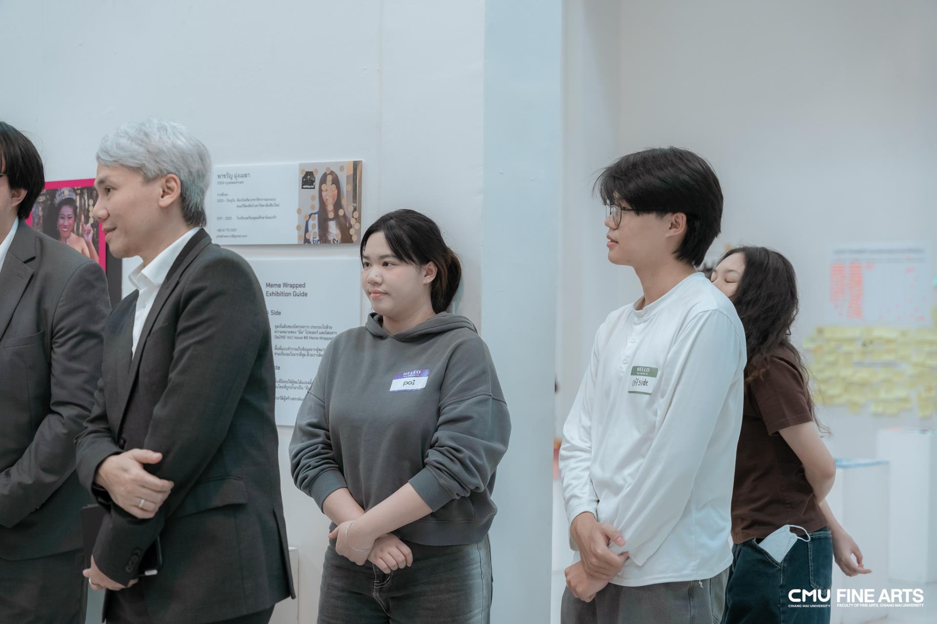 พร้อมกันนี้ คณะอาคันตุกะได้เข้าเยี่ยมชม DEZINE vol. 1 | Graphic Design Exhibition นิทรรศการจัดแสดงผลงานออกแบบสิ่งพิมพ์และนิตยสารจากนักศึกษากราฟิก สาขาวิชาการออกแบบ คณะวิจิตรศิลป์ มหาวิทยาลัยเชียงใหม่ ณ Art Gallery คณะวิจิตรศิลป์ โดยได้ร่วมแลกเปลี่ยนความคิดเห็นเกี่ยวกับกระบวนการสร้างสรรค์ผลงาน แนวคิดการออกแบบ และแนวทางการจัดการเรียนการสอนด้านกราฟิกดีไซน์