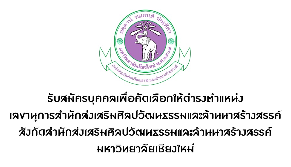 สำนักส่งเสริมศิลปวัฒนธรรมและล้านนาสร้างสรรค์ มช. รับสมัครบุคคลเพื่อคัดเลือกให้ดำรงตำแหน่ง เลขานุการสำนักส่งเสริมศิลปวัฒนธรรมและล้านนาสร้างสรรค์