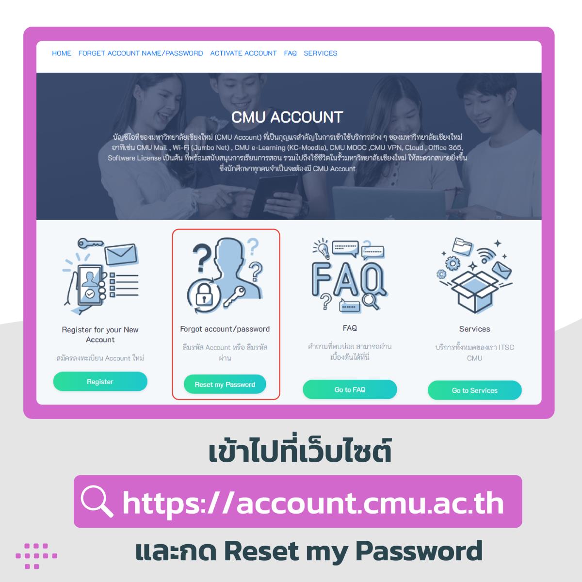 ผ่านเว็บไซต์ https://account.cmu.ac.th