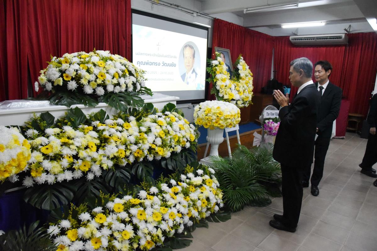 ศาสตราจารย์ ดร.นพ.พงษ์รักษ์ ศรีบัณฑิตมงคล อธิการบดี พร้อมด้วยคณะผู้บริหารมหาวิทยาลัยเชียงใหม่ ร่วมแสดงความไว้อาลัยและร่วมพิธีนมัสการพระเจ้าเนื่องในการล่วงหลับไปของ คุณพ่อทรง วัฒนชัย ซึ่งเป็นบิดาของ รองศาสตราจารย์ ดร.ปิติวัฒน์ วัฒนชัย ผู้อำนวยการอุทยานวิทยาศาสตร์และเทคโนโลยี มหาวิทยาลัยเชียงใหม่ ณ คริสตจักรจีนเชียงใหม่ (ฟ้าฮ่าม) ต.วัดเกต อ.เมือง จ.เชียงใหม่ วันพุธที่ 22 ตุลาคม พ.ศ. 2568