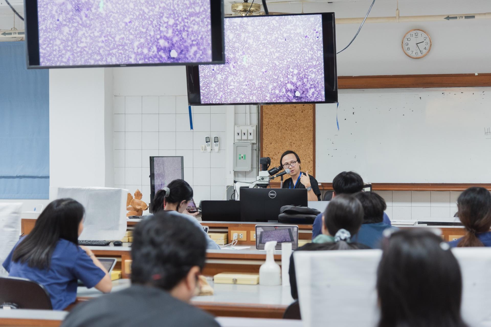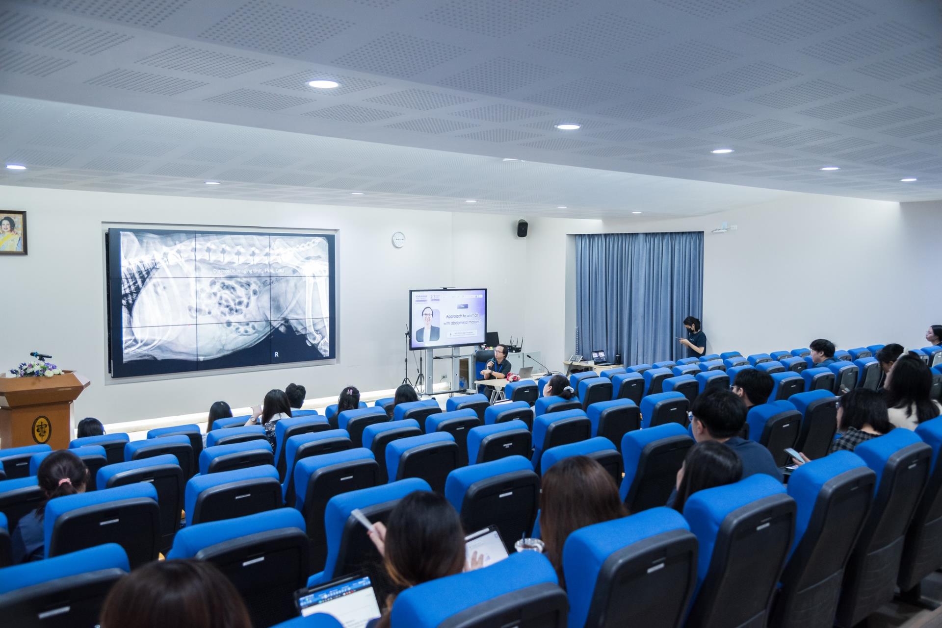 การอบรมในครั้งนี้มุ่งเน้นการเสริมสร้างทักษะสัตวแพทย์ในการวินิจฉัยและรักษาเนื้องอกในช่องท้องอย่างเป็นระบบ ตลอดระยะเวลา 2 วันเต็ม ผู้เข้าอบรมได้รับความรู้ทั้งในภาคบรรยายทฤษฎีการวินิจฉัยก้อนเนื้อ ณ ห้องประชุม E115 และภาคปฏิบัติการ (Workshop) ณ ห้องปฏิบัติการ E211 และห้องปฏิบัติการ C107 ซึ่งเน้นการฝึกหัตถการ Ultrasound-guided biopsy และการแปลผลทางพยาธิวิทยาจากเคสจริง เพื่อนำไปประยุกต์ใช้ในการตรวจวินิจฉัยและวางแผนการรักษาได้อย่างแม่นยำยิ่งขึ้น