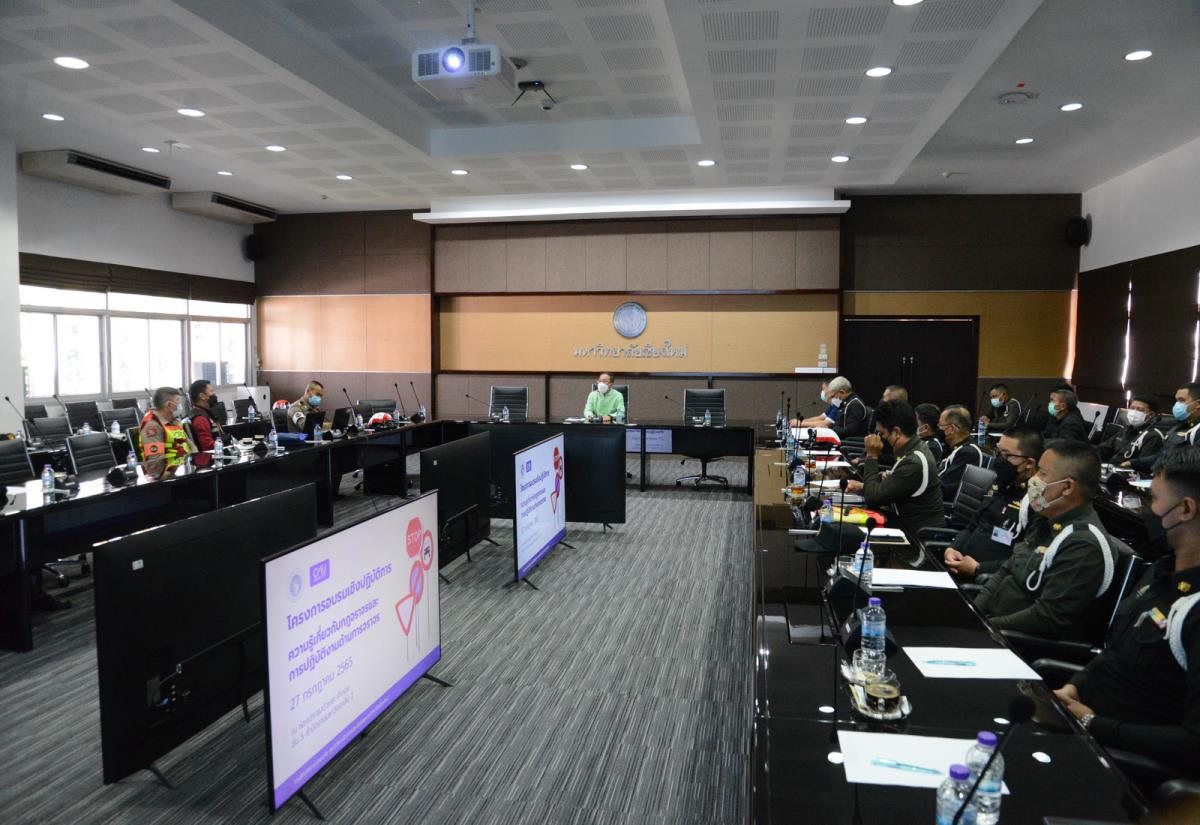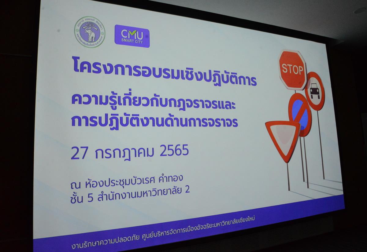 รองศาสตราจารย์ประเสริฐ ฤกษ์เกรียงไกร รักษาการแทนรองอธิการบดีมหาวิทยาลัยเชียงใหม่ เป็นประธานเปิดการฝึกอบรมเชิงปฏิบัติการ “ความรู้เกี่ยวกับกฎจราจรและการปฏิบัติงานด้านการจราจร” ให้แก่บุคลากรของงานรักษาความปลอดภัย ศูนย์บริหารจัดการเมืองอัจฉริยะมหาวิทยาลัยเชียงใหม่ โดยมีทีมวิทยากรจากงานศูนย์ปฏิบัติการจราจรตำรวจภูธรจังหวัดเชียงใหม่ บรรยายแลกเปลี่ยนเรียนรู้และฝึกปฏิบัติ สร้างประสบการณ์ด้านการจราจรและความปลอดภัยบนท้องถนนของมหาวิทยาลัยเชียงใหม่ ณ ห้องประชุมบัวเรศ คำทอง อาคารสำนักงานมหาวิทยาลัย 2 วันพุธที่ 27 กรกฎาคม พ.ศ. 2565