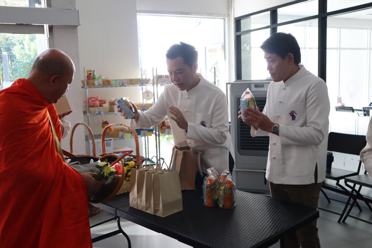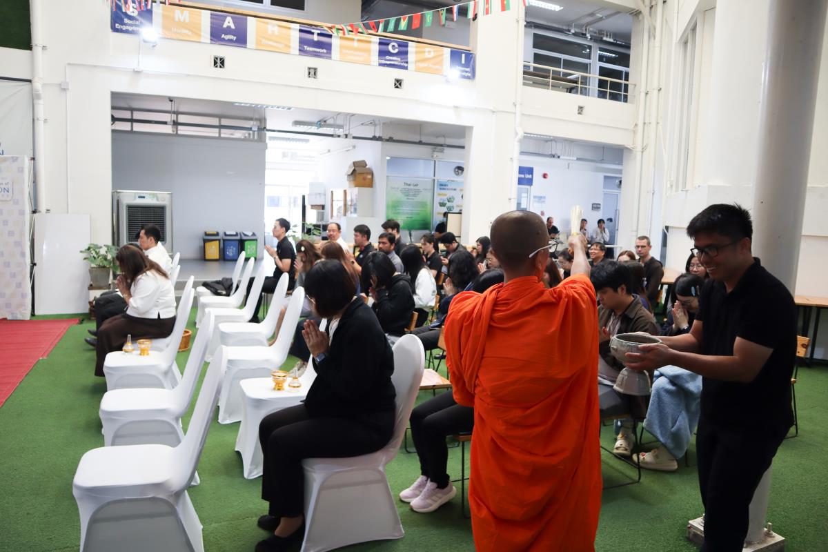 ภายในพิธีจัดกิจกรรมทำบุญตักบาตร พระสงฆ์จำนวน 5 รูป ร่วมพิธีเจริญพระพุทธมนต์ และรับฟังพระธรรมเทศนา เพื่อสร้างแรงบันดาลใจและแนวทางในการดำเนินชีวิต จากนั้นได้มีการถวายเครื่องสังฆทานและภัตตาหารแด่พระสงฆ์