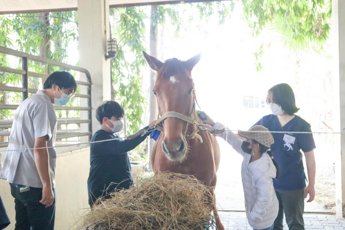 อ.สพ.ญ.ดร.ณัฐกานต์ อวัยวานนท์ ผู้ช่วยคณบดีฝ่ายบริการวิชาการและการศึกษาตลอดชีวิต คณะสัตวแพทยศาสตร์ มหาวิทยาลัยเชียงใหม่ เป็นตัวแทนครอบครัวคณะสัตวแพทยศาสตร์ กล่าวเปิดกิจกรรม “Vet Camp Series for Kids: Pony Groom Project ครั้งที่ 2” พร้อมต้อนรับครอบครัวและน้อง ๆ ร่วมสัมผัสและเรียนรู้ธรรมชาติของม้า ผ่านกิจกรรมปฏิบัติกับม้าตัวจริง ได้แก่ Hello….Ponies มารู้จักกับม้ากันเถอะ....ฮี้ๆ ๆ Walk Together แนะนำและรู้จักวิธีเข้าหาม้า ขึ้นม้า จูงม้า Groom Me Please แปรงขนทำความสะอาดม้า กอดม้า รักม้า และปิดท้ายด้วย Good Bye…Ponies เตรียมหญ้าและให้อาหารม้า โดยมีอาจารย์ผู้เชี่ยวชาญเฉพาะทาง และพี่ ๆ ทีมงาน ให้การดูแลอย่างใกล้ชิด ณ คณะสัตวแพทยศาสตร์ มหาวิทยาลัยเชียงใหม่ เมื่อวันที่ 8 มกราคม 2566