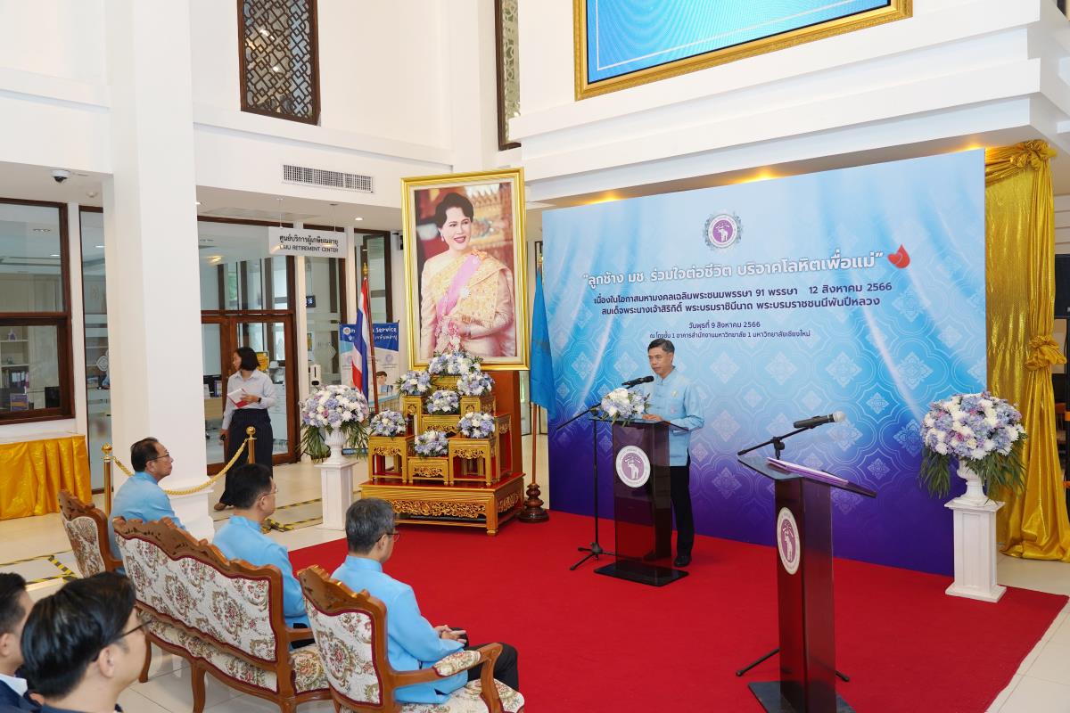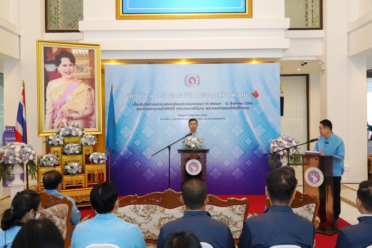 มหาวิทยาลัยเชียงใหม่จัดโครงการ "ลูกช้าง มช. ร่วมใจต่อชีวิต บริจาคโลหิตเพื่อแม่" เพื่อถวายเป็นพระราชกุศลแด่สมเด็จพระนางเจ้าสิริกิติ์ พระบรมราชินีนาถ พระบรมราชชนนีพันปีหลวง เนื่องในโอกาสทรงเจริญพระชนมพรรษา 91 พรรษา โดยมี ศาสตราจารย์ ดร.นพ.พงษ์รักษ์ ศรีบัณฑิตมงคล อธิการบดีมหาวิทยาลัยเชียงใหม่ เป็นประธานพิธีเปิด พร้อมด้วยคณะผู้บริหารมหาวิทยาลัยเชียงใหม่ คณาจารย์ ข้าราชการ เจ้าหน้าที่ นักศึกษามหาวิทยาลัยเชียงใหม่ ร่วมบริจาคฯ เมื่อวันพุธที่ 9 สิงหาคม 2566 ณ สำนักงานมหาวิทยาลัย มหาวิทยาลัยเชียงใหม่