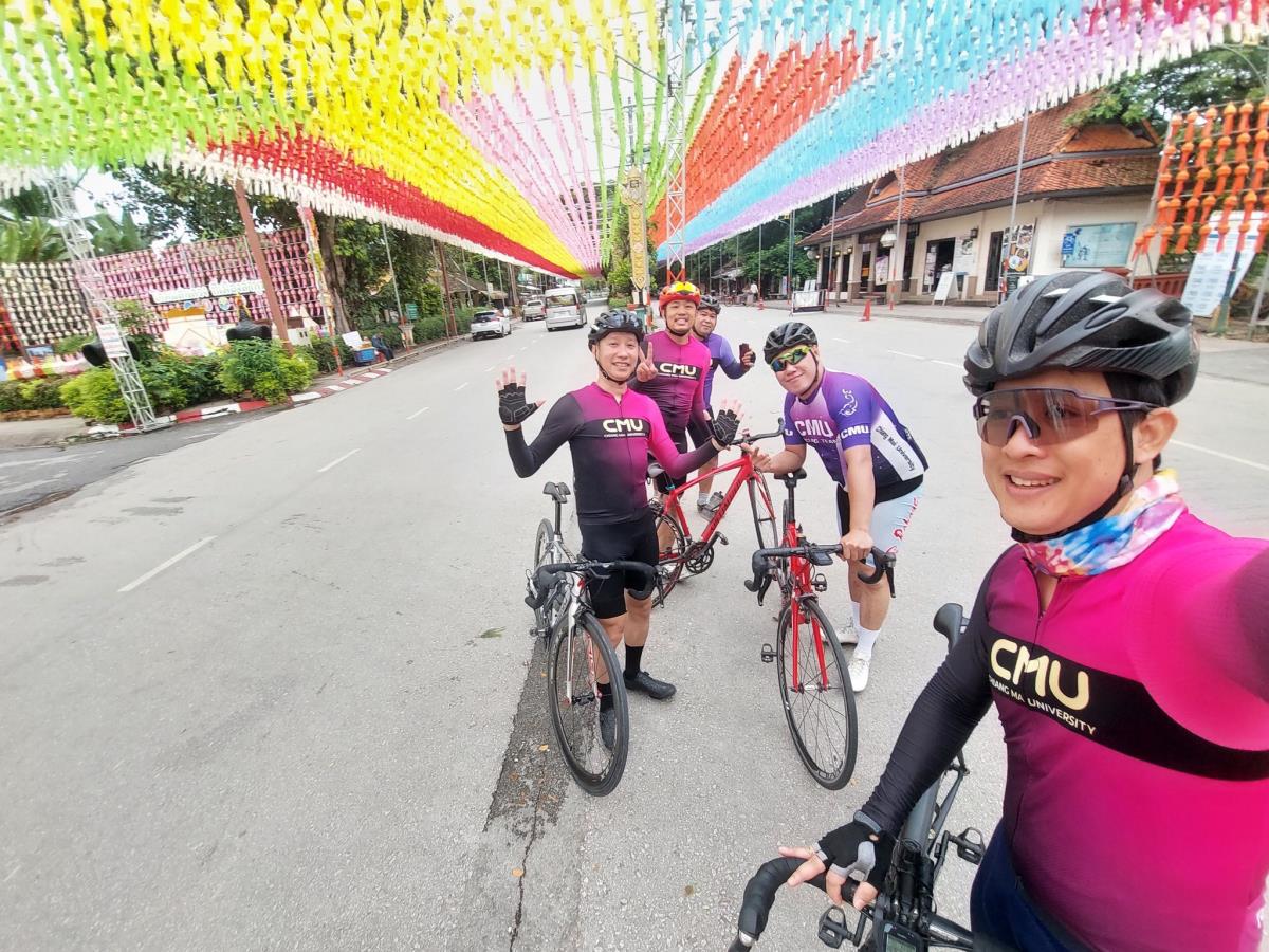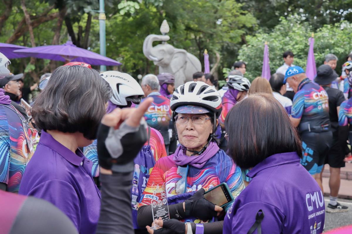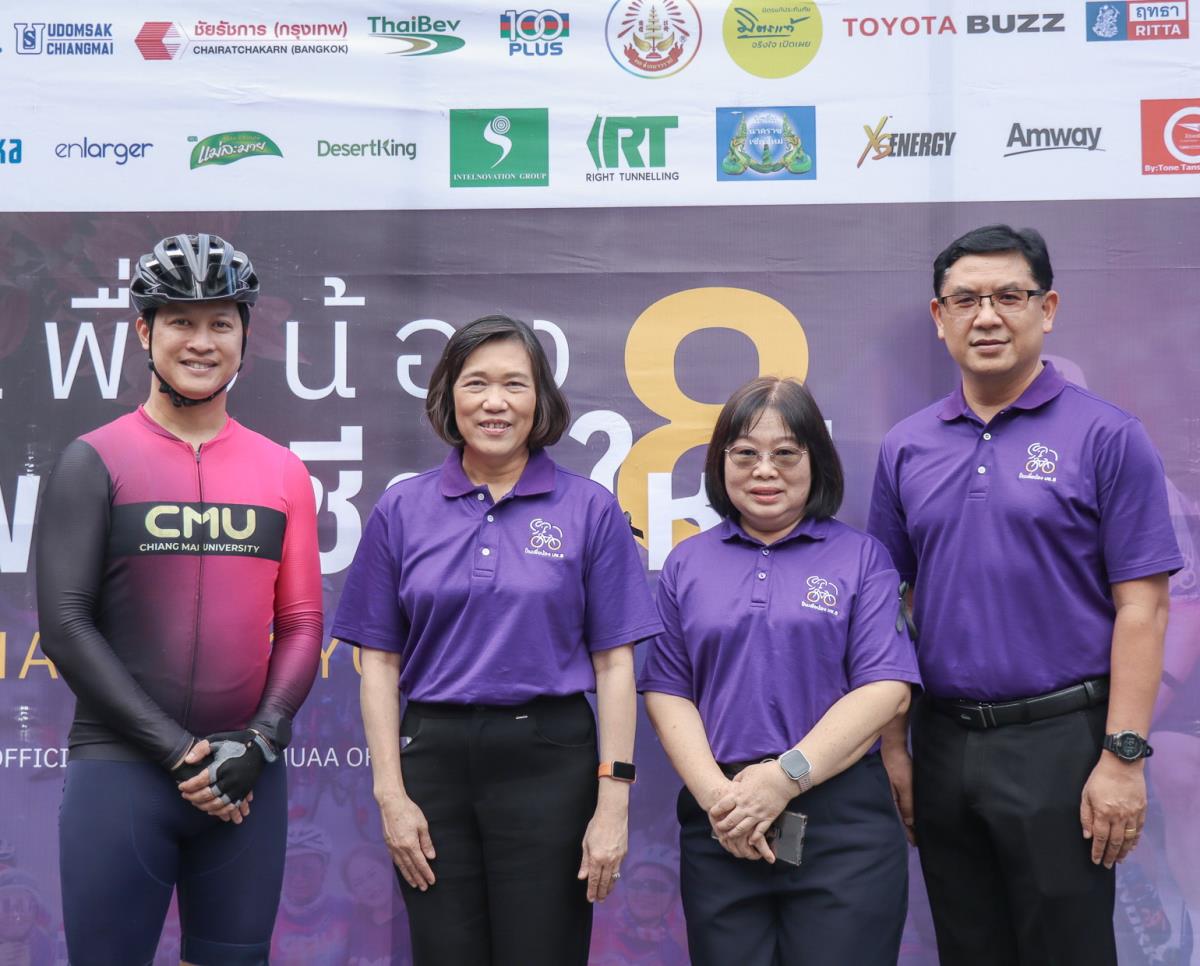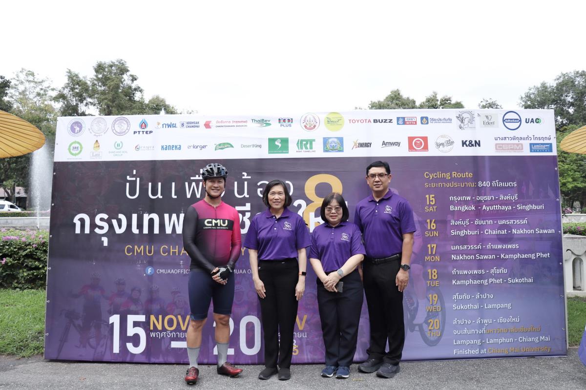 ภายในพิธีได้รับเกียรติจาก ผู้ช่วยศาสตราจารย์ ดร.ปิติพงษ์ ยอดมงคล รองอธิการบดีมหาวิทยาลัยเชียงใหม่ คุณสุมิตร เพชราภิรัชต์ นายกสมาคมนักศึกษาเก่ามหาวิทยาลัยเชียงใหม่ กล่าวต้อนรับและขอบคุณนักปั่นทุกท่าน ในโอกาสนี้ คุณนฤมล พูลเพียร นายกสมาคมศิษย์เก่าพยาบาลศาสตร์ มหาวิทยาลัยเชียงใหม่ และทีมบริหารสมาคมฯ ร่วมให้กำลังใจอย่างอบอุ่น ณ บริเวณศาลาธรรม มหาวิทยาลัยเชียงใหม่
