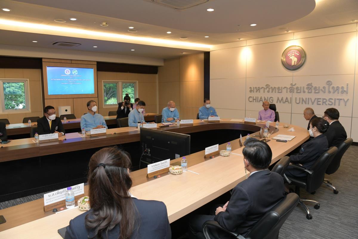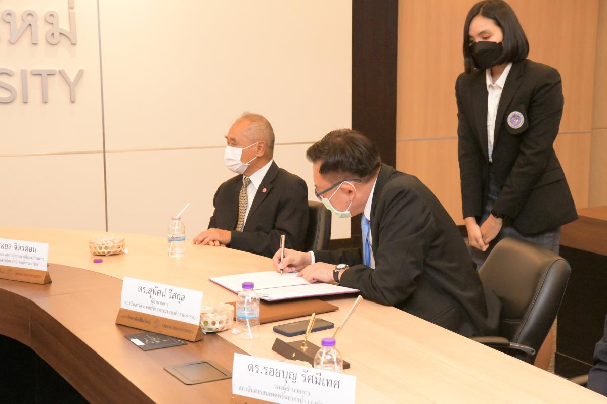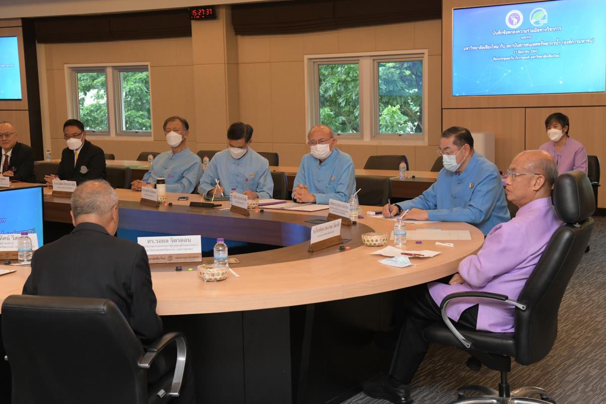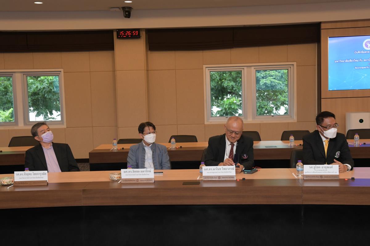 เมื่อวันศุกร์ที่ 17 มิถุนายน 2565 มหาวิทยาลัยเชียงใหม่ และสถาบันสารสนเทศทรัพยากรน้ำ(องค์การมหาชน) ร่วมจัดพิธีลงนามบันทึกข้อตกลงความร่วมมือทางวิชาการ ณ ห้องประชุมตะวัน กังวานพงศ์ ชั้น 4 อาคารยุทธศาสตร์ มหาวิทยาลัยเชียงใหม่ โดยมี ศาสตราจารย์เกียรติคุณ นายแพทย์เกษม วัฒนชัย นายกสภามหาวิทยาลัยเชียงใหม่ ศาสตราจารย์พิเศษ ดร.สุรเกียรติ์ เสถียรไทย กรรมการสภามหาวิทยาลัยผู้ทรงคุณวุฒิ ศาสตราจารย์คลินิก นายแพทย์นิเวศน์ นันทจิต อธิการบดีมหาวิทยาลัยเชียงใหม่ ดร.รอยล จิตรดอน ประธานกรรมการและกรรมการผู้ทรงคุณวุฒิในคณะกรรมการ สถาบันสารสนเทศทรัพยากรน้ำ(องค์การมหาชน) ดร.สุทัศน์ วีสกุล ผู้อำนวยการสถาบันสารสนเทศทรัพยากรน้ำ (องค์การมหาชน) นายเจนศักดิ์ ลิมปิติ ผู้อำนวยการสำนักงานทรัพยากรน้ำแห่งชาติภาค 1 และคณะผู้บริหารของทั้งสองฝ่าย ร่วมเป็นเกียรติร่วมในงานดังกล่าว โดยมีวัตถุประสงค์เพื่อให้เกิดการประยุกต์ใช้ วิจัย และพัฒนาด้านเทคโนโลยีสารสนเทศจากคลังข้อมูลน้ำแห่งชาติ สนับสนุนการบริหารจัดการทรัพยากรน้ำเชิงพื้นที่ ทั้งในระดับลุ่มน้ำ จังหวัด ท้องถิ่น และชุมชน รวมทั้งแลกเปลี่ยน เสริมสร้างองค์ความรู้ และพัฒนาศักยภาพบุคลากรร่วมกัน ให้สามารถนำผลงานมาประยุกต์ใช้ เกิดประโยชน์ ทั้งมุ่งเน้นให้เกิดการใช้ทรัพยากรน้ำอย่างคุ้มค่า เกิดความพร้อมในการรับมือและปรับตัวต่อผลกระทบจากการเปลี่ยนแปลงสภาพภูมิอากาศ