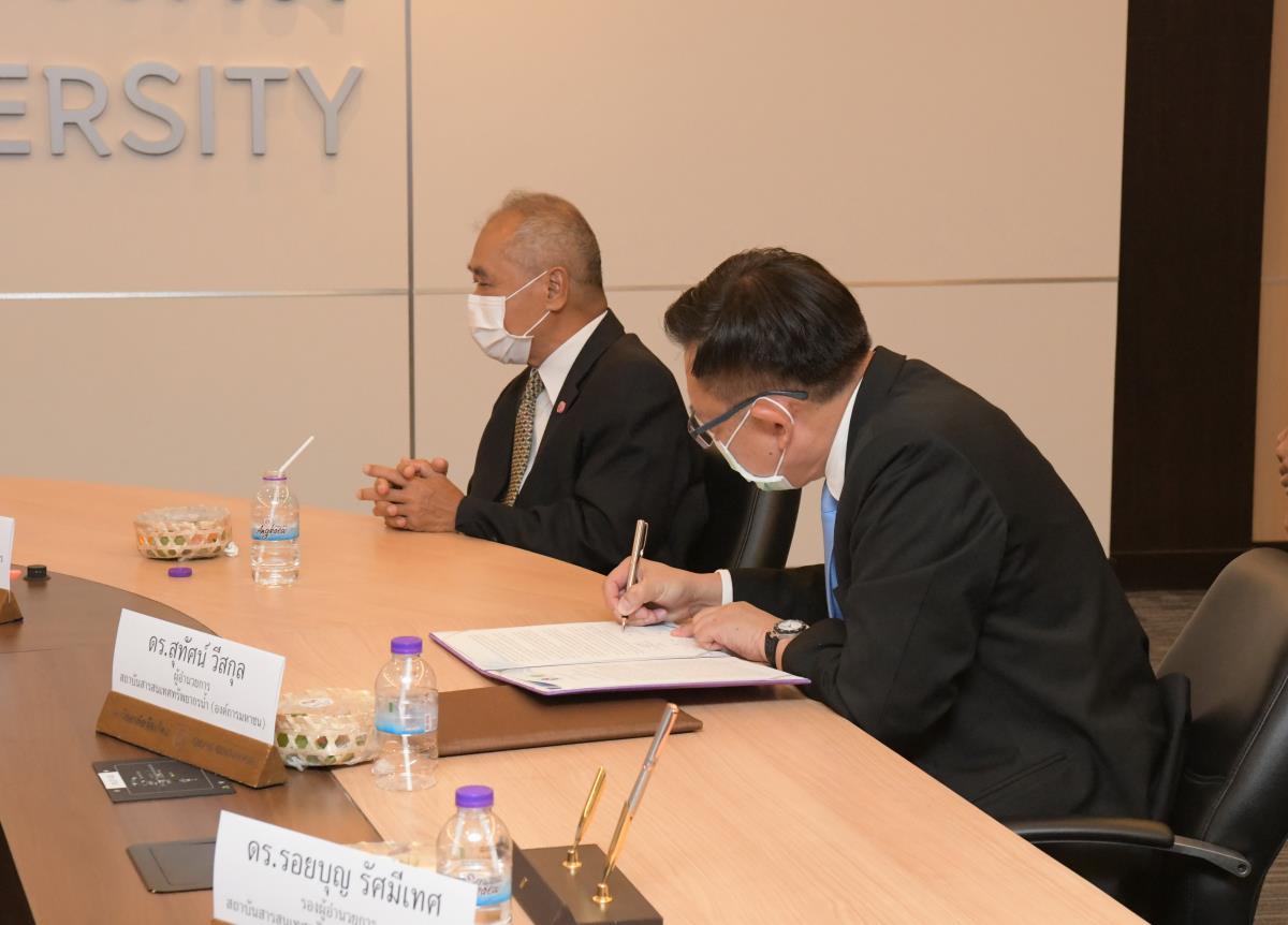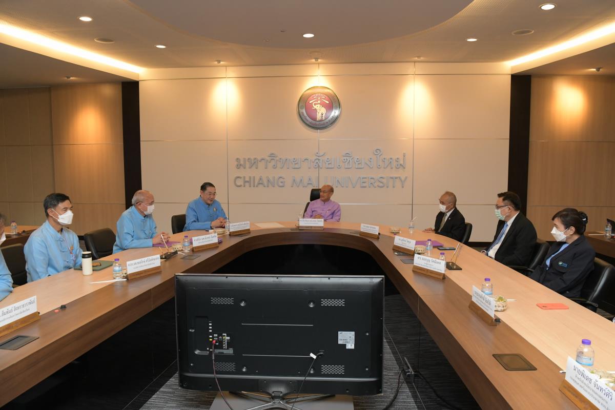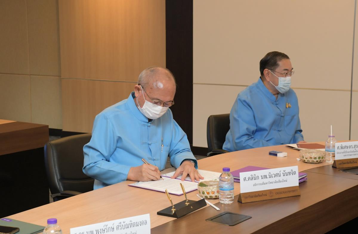 เมื่อวันศุกร์ที่ 17 มิถุนายน 2565 มหาวิทยาลัยเชียงใหม่ และสถาบันสารสนเทศทรัพยากรน้ำ(องค์การมหาชน) ร่วมจัดพิธีลงนามบันทึกข้อตกลงความร่วมมือทางวิชาการ ณ ห้องประชุมตะวัน กังวานพงศ์ ชั้น 4 อาคารยุทธศาสตร์ มหาวิทยาลัยเชียงใหม่ โดยมี ศาสตราจารย์เกียรติคุณ นายแพทย์เกษม วัฒนชัย นายกสภามหาวิทยาลัยเชียงใหม่ ศาสตราจารย์พิเศษ ดร.สุรเกียรติ์ เสถียรไทย กรรมการสภามหาวิทยาลัยผู้ทรงคุณวุฒิ ศาสตราจารย์คลินิก นายแพทย์นิเวศน์ นันทจิต อธิการบดีมหาวิทยาลัยเชียงใหม่ ดร.รอยล จิตรดอน ประธานกรรมการและกรรมการผู้ทรงคุณวุฒิในคณะกรรมการ สถาบันสารสนเทศทรัพยากรน้ำ(องค์การมหาชน) ดร.สุทัศน์ วีสกุล ผู้อำนวยการสถาบันสารสนเทศทรัพยากรน้ำ (องค์การมหาชน) นายเจนศักดิ์ ลิมปิติ ผู้อำนวยการสำนักงานทรัพยากรน้ำแห่งชาติภาค 1 และคณะผู้บริหารของทั้งสองฝ่าย ร่วมเป็นเกียรติร่วมในงานดังกล่าว โดยมีวัตถุประสงค์เพื่อให้เกิดการประยุกต์ใช้ วิจัย และพัฒนาด้านเทคโนโลยีสารสนเทศจากคลังข้อมูลน้ำแห่งชาติ สนับสนุนการบริหารจัดการทรัพยากรน้ำเชิงพื้นที่ ทั้งในระดับลุ่มน้ำ จังหวัด ท้องถิ่น และชุมชน รวมทั้งแลกเปลี่ยน เสริมสร้างองค์ความรู้ และพัฒนาศักยภาพบุคลากรร่วมกัน ให้สามารถนำผลงานมาประยุกต์ใช้ เกิดประโยชน์ ทั้งมุ่งเน้นให้เกิดการใช้ทรัพยากรน้ำอย่างคุ้มค่า เกิดความพร้อมในการรับมือและปรับตัวต่อผลกระทบจากการเปลี่ยนแปลงสภาพภูมิอากาศ