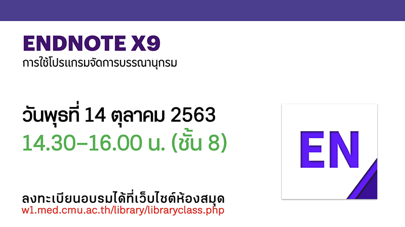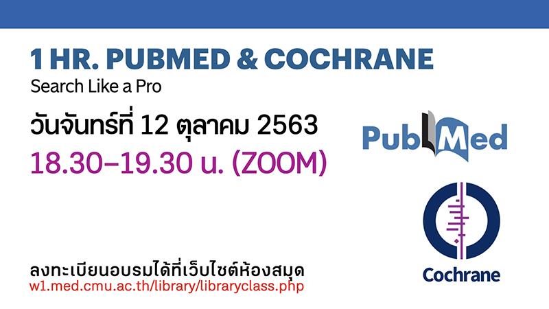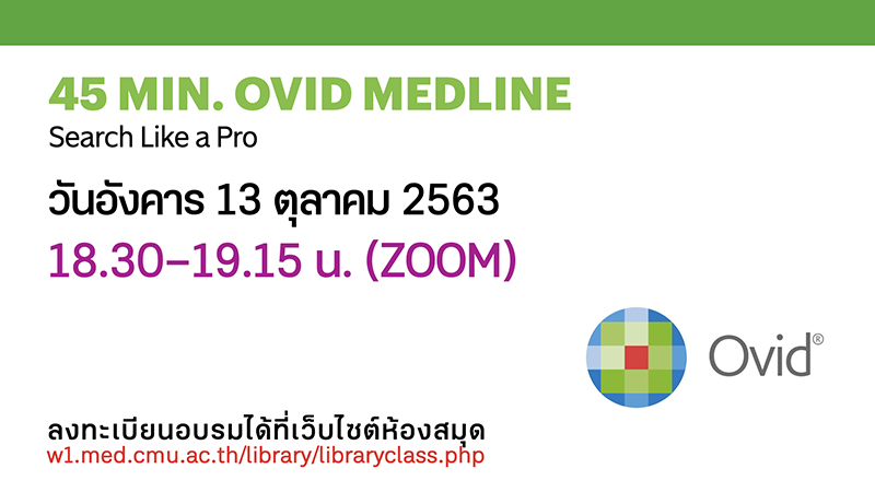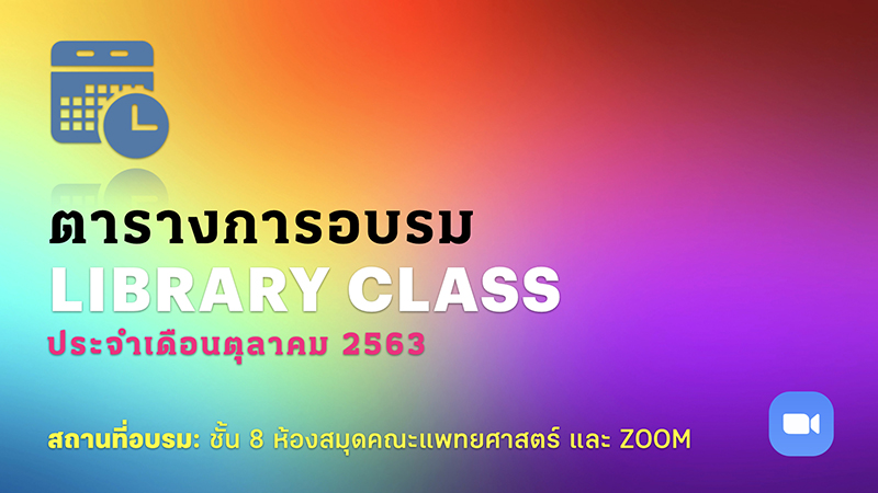 ห้องสมุดคณะแพทยศาสตร์ เชิญร่วมการอบรม LIBRARY CLASS ประจำเดือนตุลาคม 2563 ในห้องสมุดคณะแพทยศาสตร์ และผ่านโปรแกรม Zoom