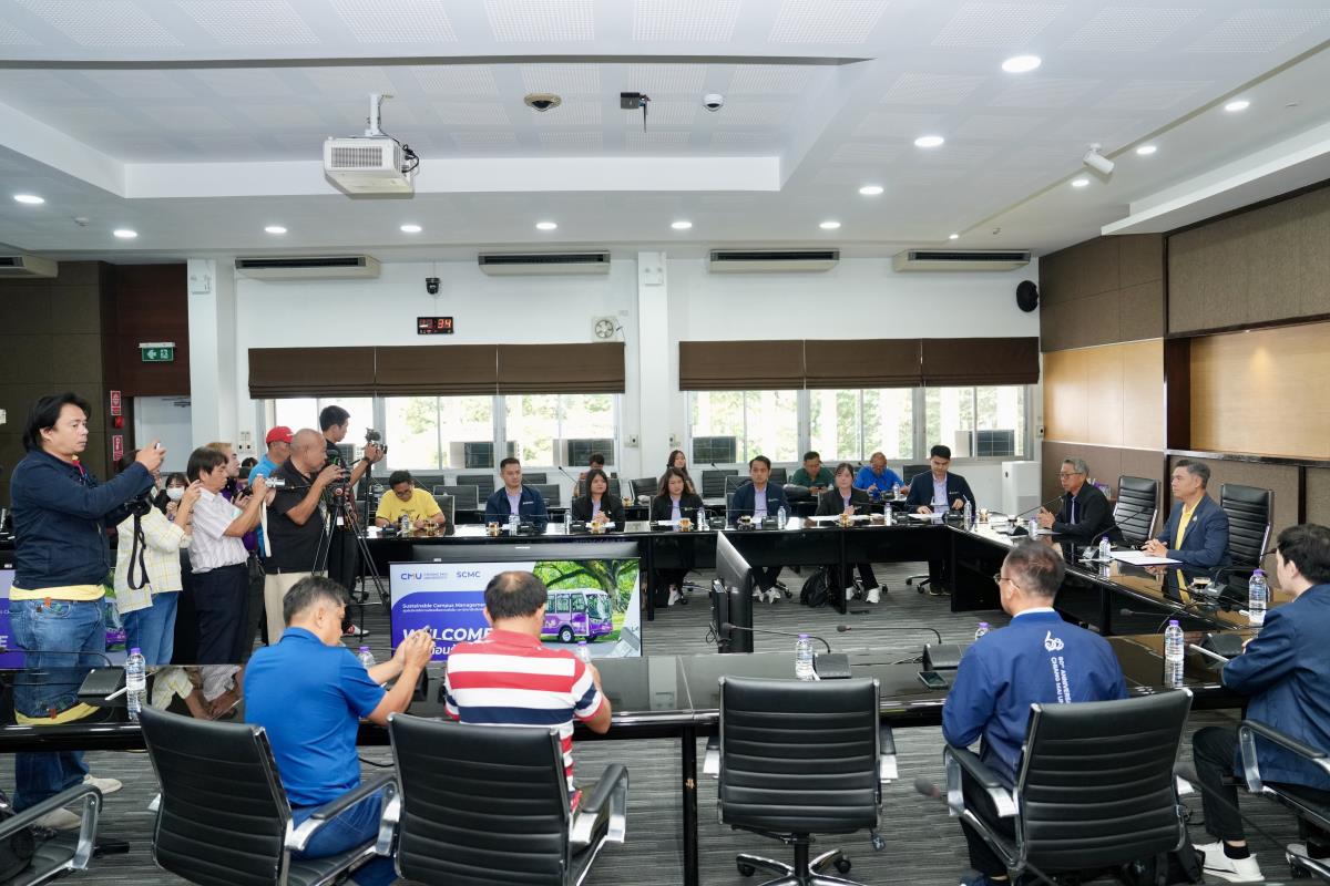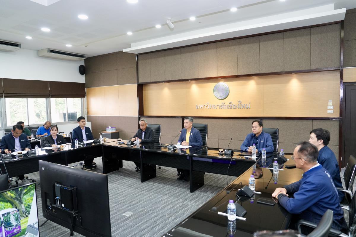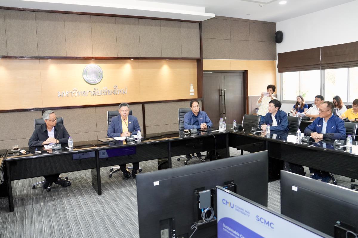 ศาสตราจารย์ ดร.นพ.พงษ์รักษ์ ศรีบัณฑิตมงคล อธิการบดีมหาวิทยาลัยเชียงใหม่ ให้การต้อนรับ คุณรัฐฉัตร ศิริพานิช ผู้จัดการสำนักงานบริหารกองทุนเพื่อส่งเสริมการอนุรักษ์พลังงาน และคณะฯ ในโอกาสเยี่ยมชมมหาวิทยาลัยเชียงใหม่ และจัดกิจกรรมสื่อมวลชนสัญจร (Press Tour) และกิจกรรมศึกษาดูงานโครงการ BCG Model : โมเดลเศรษฐกิจใหม่สู่การพัฒนาที่ยั่งยืน พร้อมทั้งเยี่ยมชมศูนย์บริหารจัดการเมืองเพื่อความยั่งยืน มหาวิทยาลัยเชียงใหม่ (CMU Smart Campus Management Center) โดยมี ผู้ช่วยศาสตราจารย์ ดร.ชาย รังสิยากูล ผู้อำนวยการศูนย์บริหารจัดการเมืองเพื่อความยั่งยืน รองศาสตราจารย์ ดร.สิริชัย คุณภาพดีเลิศ ผู้อำนวยการสถาบันวิจัยและพัฒนาพลังงานนครพิงค์ ผู้ช่วยศาสตราจารย์ ดร.อนุชา พรมวังขวา อาจารย์ภาควิศวกรรมเครื่องกล มหาวิทยาลัยเชียงใหม่ นำเยี่ยมชมและบรรยายสรุป ณ ห้องประชุมบัวเรศ คำทอง สำนักงานมหาวิทยาลัย มหาวิทยาลัยเชียงใหม่ เมื่อวันจันทร์ที่ 25 สิงหาคม พ.ศ.2568