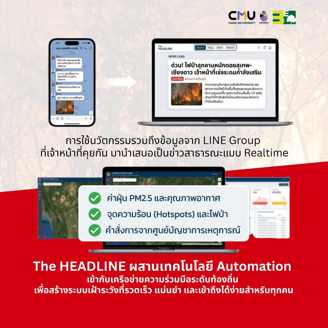 "THE HEADLINE" ตัวช่วยติดตามสถานการณ์ อัพเดทข่าวสาร และให้กำลังใจภารกิจสู้ไฟป่าของอาสาฯ ทีมต่างๆ 4 จังหวัดภาคเหนือ ได้แก่ เชียงใหม่ เชียงราย ลำพูน และ ลำปาง