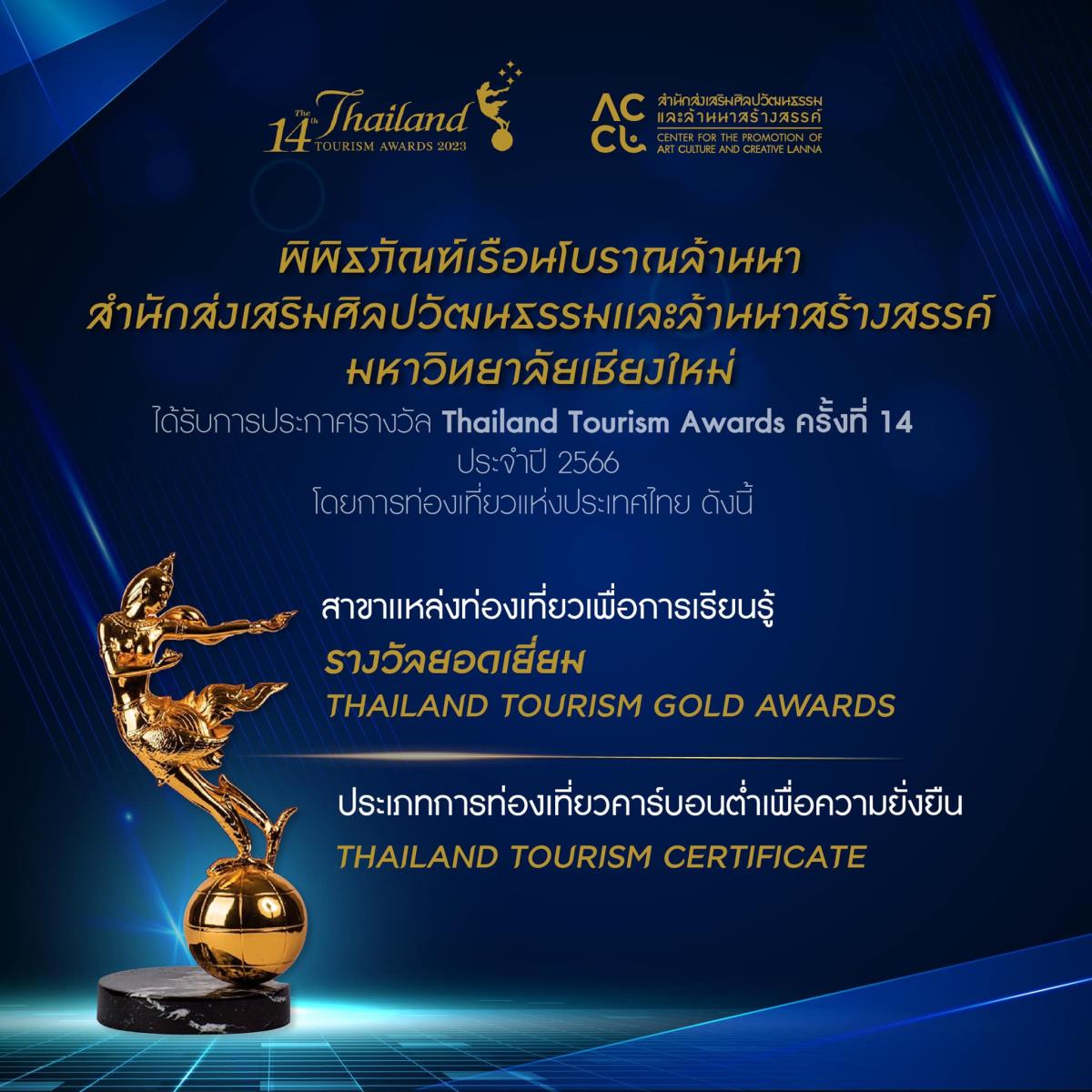 พิพิธภัณฑ์เรือนโบราณล้านนา สำนักส่งเสริมศิลปวัฒนธรรมเเละล้านนาสร้างสรรค์ มหาวิทยาลัยเชียงใหม่ ได้รับรางวัล Thailand Tourism Awards ครั้งที่ 14 ประจำปี 2566 ในสาขา