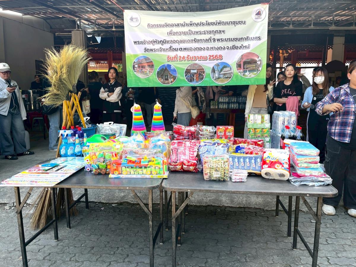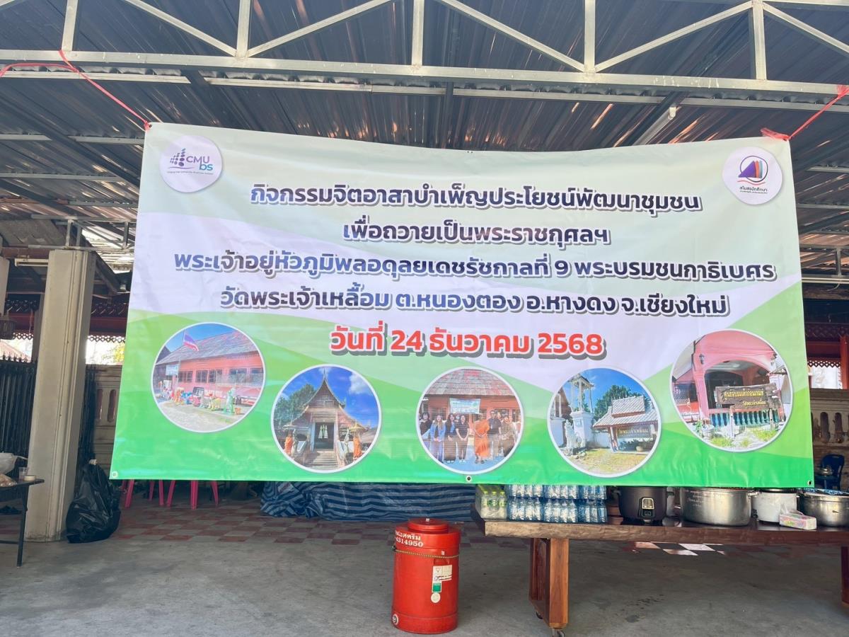 คณะบริหารธุรกิจ มหาวิทยาลัยเชียงใหม่ ร่วมกับชมรมจิตอาสา สโมสรนักศึกษาคณะบริหารธุรกิจ จัดกิจกรรมจิตอาสาบำเพ็ญประโยชน์เพื่อชุมชน ณ วัดพระเจ้าเหลื้อม และศูนย์อบรมเด็กก่อนเกณฑ์ วัดพระเจ้าเหลื้อม ตำบลหนองตอง อำเภอหางดง จังหวัดเชียงใหม่ เนื่องในโอกาสวันคล้ายวันพระบรมราชสมภพ พระบาทสมเด็จพระเจ้าอยู่หัวภูมิพลอดุลยเดช รัชกาลที่ 9 และวันชาติของประเทศไทย วันที่ 5 ธันวาคม เพื่อถวายเป็นพระราชกุศลและเทิดพระเกียรติ โดยนำนักศึกษาและบุคลากรรวมกว่า 80 คน ลงพื้นที่ดำเนินกิจกรรมเมื่อวันที่ 24 ธันวาคม 2568 ที่ผ่านมา ร่วมกันปรับปรุงและพัฒนาพื้นที่โบราณสถานและแหล่งจัดเก็บวัตถุโบราณให้มีความสะอาด เป็นระเบียบ และเอื้อต่อการเรียนรู้ประวัติศาสตร์ของชุมชน
