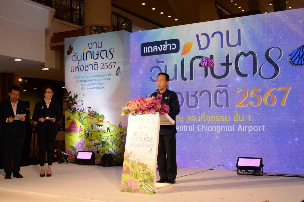 ณ ลานกิจกรรม ชั้น G ศูนย์การค้าเซ็นทรัล เชียงใหม่ แอร์พอร์ต มหาวิทยาลัยเชียงใหม่ จัดแถลงข่าวงานวันเกษตรแห่งชาติ ประจำปี 2567 ซึ่งกำหนดจัดขึ้นในวันที่ 27 พฤศจิกายน - 8 ธันวาคม 2567 ณ ไร่แม่เหียะ คณะเกษตรศาสตร์ ภายใต้ธีม “มช. สืบสาน รักษา และต่อยอดศาสตร์พระราชา สู่เกษตรทันสมัย ความมั่นคงทางอาหาร และความเป็นกลางทางคาร์บอน เพื่อการพัฒนาที่ยั่งยืน” โดยมีรองศาสตราจารย์ ดร.รัฐสิทธิ์ สุขะหุต รองอธิการบดี ผู้แทนอธิการบดีมหาวิทยาลัยเชียงใหม่ ผู้ช่วยศาสตราจารย์ ดร. ดรุณี นาพรหม คณบดีคณะเกษตรศาสตร์ นายศิวะ ธมิกานนท์ รองผู้ว่าราชการจังหวัดเชียงใหม่ และนางอัญชลี สุวจิตตานนท์ ผู้ตรวจราชการกระทรวงเกษตรและสหกรณ์ ร่วมพิธีเปิดการแถลงข่าว โดยมีวัตถุประสงค์หลักเพื่อเฉลิมพระเกียรติ พระบาทสมเด็จพระปรเมนทรรามาธิบดีศรีสินทรมหาวชิราลงกรณพระวชิรเกล้าเจ้าอยู่หัว ในโอกาสมหามงคล 6 รอบ พระชนมพรรษา และส่งเสริมนโยบายประเทศตามยุทธศาสตร์กระทรวงเกษตรและสหกรณ์ในการขับเคลื่อนวิสัยทัศน์ “เกษตรกรมั่นคง ภาคการเกษตรมั่งคั่ง ทรัพยากรการเกษตรยั่งยืน” และร่วมเฉลิมฉลองในโอกาสวาระครบรอบ 60 ปี แห่งการสถาปนามหาวิทยาลัยเชียงใหม่