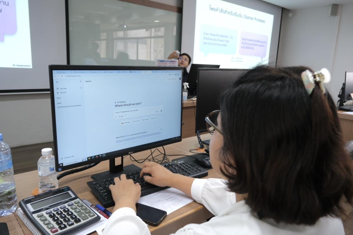 การอบรมครั้งนี้ วิทยากรได้บรรยายให้ความรู้เกี่ยวกับพื้นฐานและแนวคิดของเทคโนโลยี AI รวมถึงแนวทางการประยุกต์ใช้เครื่องมือ AI เพื่อสนับสนุนการทำงาน ตลอดจนเทคนิคการเขียนคำสั่ง (Prompting) เพื่อให้ได้ผลลัพธ์ที่มีประสิทธิภาพ นอกจากนี้ยังมีกิจกรรม Workshop ให้ผู้เข้าร่วมการอบรมได้ทดลองใช้งานจริง พร้อมแลกเปลี่ยนข้อสงสัยและประสบการณ์ เพื่อให้สามารถนำความรู้ไปประยุกต์ใช้กับงานในบริบทของตนได้อย่างเหมาะสม