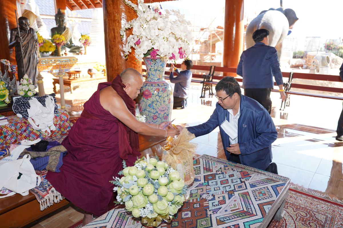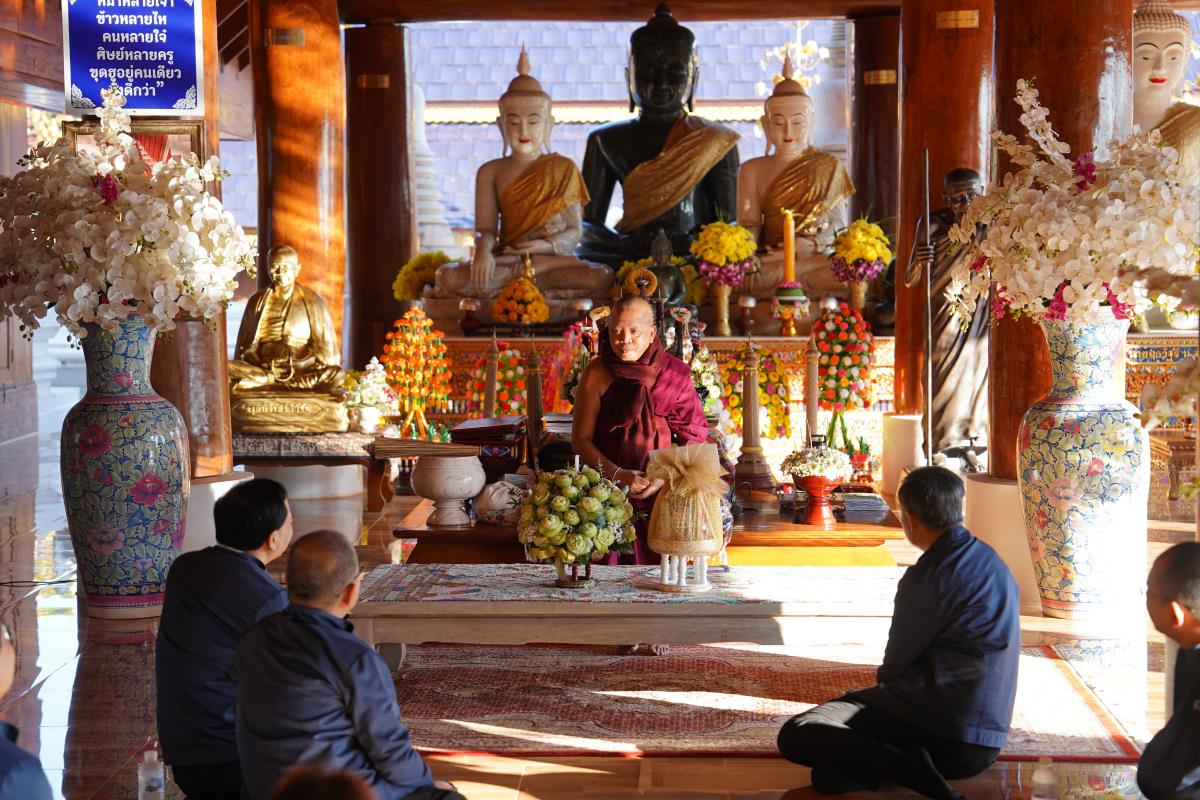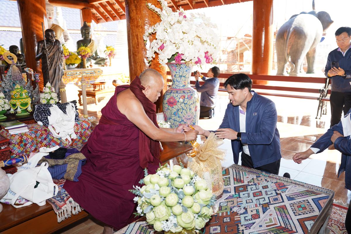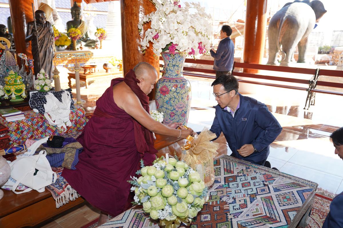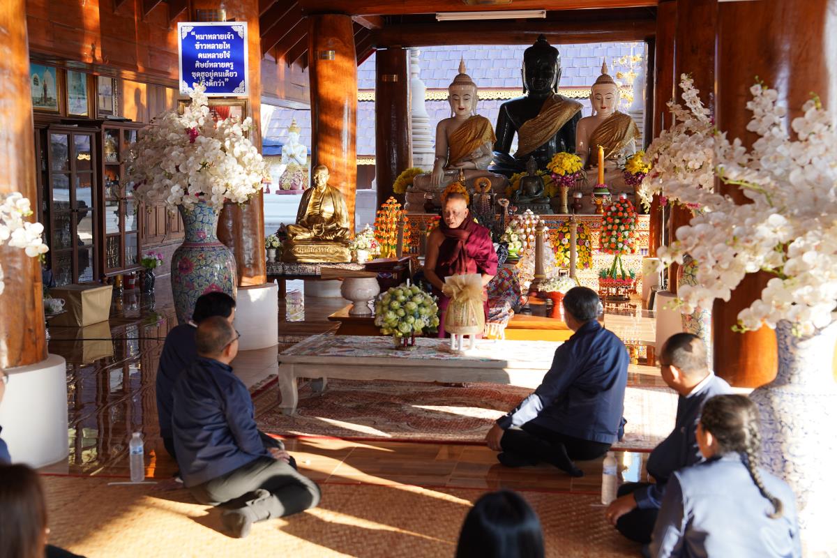 ศาสตราจารย์ ดร.นพ.พงษ์รักษ์ ศรีบัณฑิตมงคล อธิการบดีมหาวิทยาลัยเชียงใหม่ พร้อมด้วยคณะผู้บริหารมหาวิทยาลัยเชียงใหม่ เดินทางเข้ากราบนมัสการขอพร เนื่องในเทศกาลปีใหม่ 2567 ครูบาเจ้าเทือง นาถสีโล เจ้าอาวาสวัดเด่นสะหลีศรีเมืองแกน อ.แม่แตง จ.เชียงใหม่ เพื่อความเป็นสิริมงคล เนื่องในเทศกาลวันขึ้นปีใหม่ พ.ศ.2567 เมื่อวันพุธที่ 3 มกราคม พ.ศ.2567
