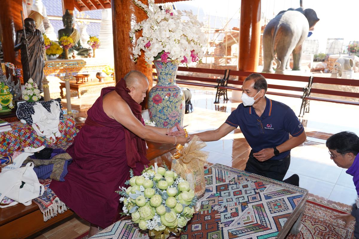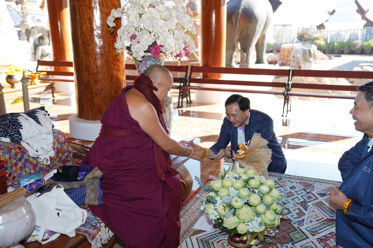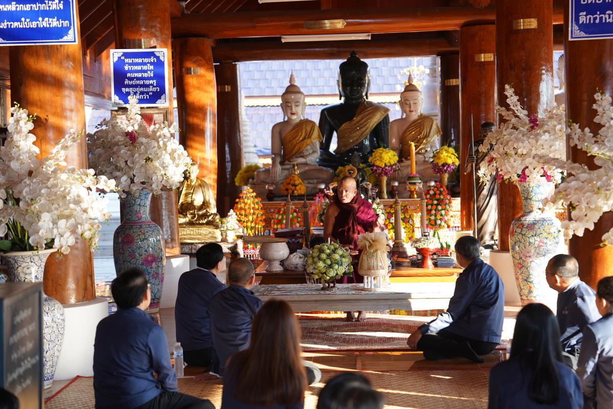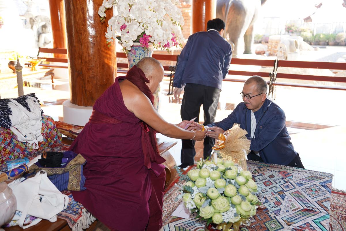 ศาสตราจารย์ ดร.นพ.พงษ์รักษ์ ศรีบัณฑิตมงคล อธิการบดีมหาวิทยาลัยเชียงใหม่ พร้อมด้วยคณะผู้บริหารมหาวิทยาลัยเชียงใหม่ เดินทางเข้ากราบนมัสการขอพร เนื่องในเทศกาลปีใหม่ 2567 ครูบาเจ้าเทือง นาถสีโล เจ้าอาวาสวัดเด่นสะหลีศรีเมืองแกน อ.แม่แตง จ.เชียงใหม่ เพื่อความเป็นสิริมงคล เนื่องในเทศกาลวันขึ้นปีใหม่ พ.ศ.2567 เมื่อวันพุธที่ 3 มกราคม พ.ศ.2567