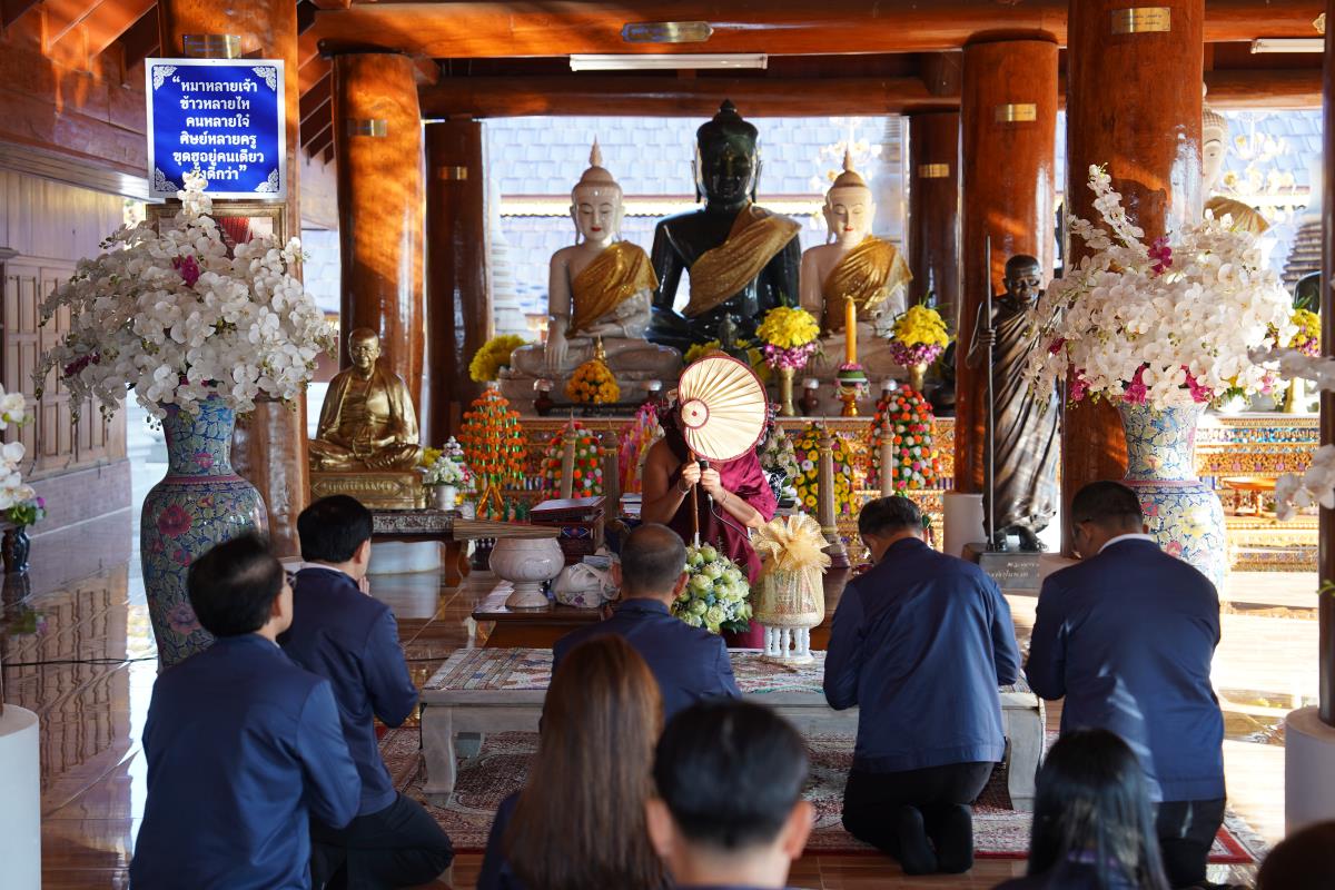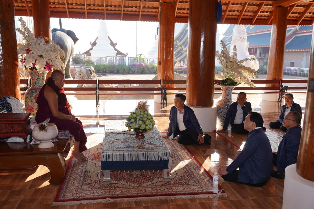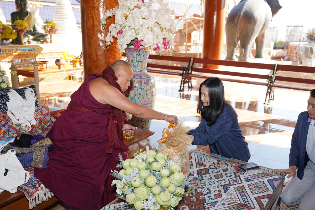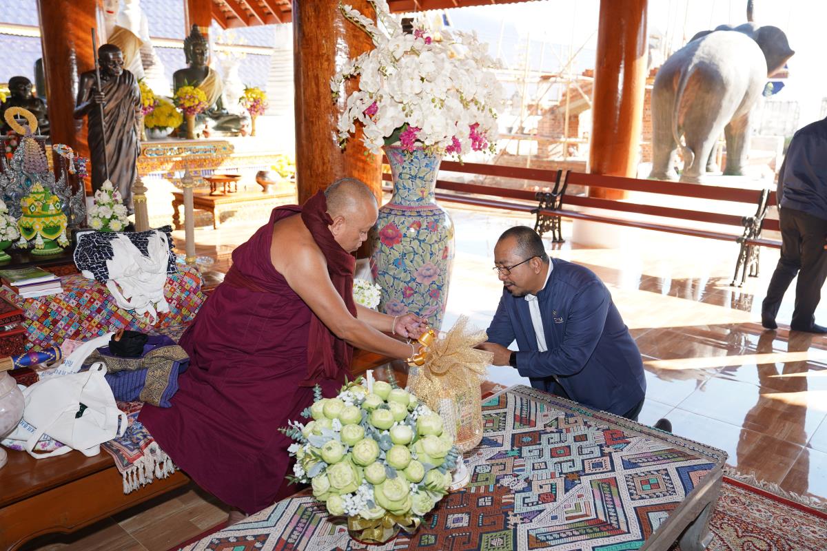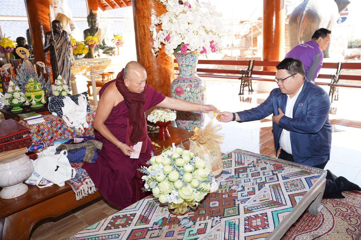 ศาสตราจารย์ ดร.นพ.พงษ์รักษ์ ศรีบัณฑิตมงคล อธิการบดีมหาวิทยาลัยเชียงใหม่ พร้อมด้วยคณะผู้บริหารมหาวิทยาลัยเชียงใหม่ เดินทางเข้ากราบนมัสการขอพร เนื่องในเทศกาลปีใหม่ 2567 ครูบาเจ้าเทือง นาถสีโล เจ้าอาวาสวัดเด่นสะหลีศรีเมืองแกน อ.แม่แตง จ.เชียงใหม่ เพื่อความเป็นสิริมงคล เนื่องในเทศกาลวันขึ้นปีใหม่ พ.ศ.2567 เมื่อวันพุธที่ 3 มกราคม พ.ศ.2567