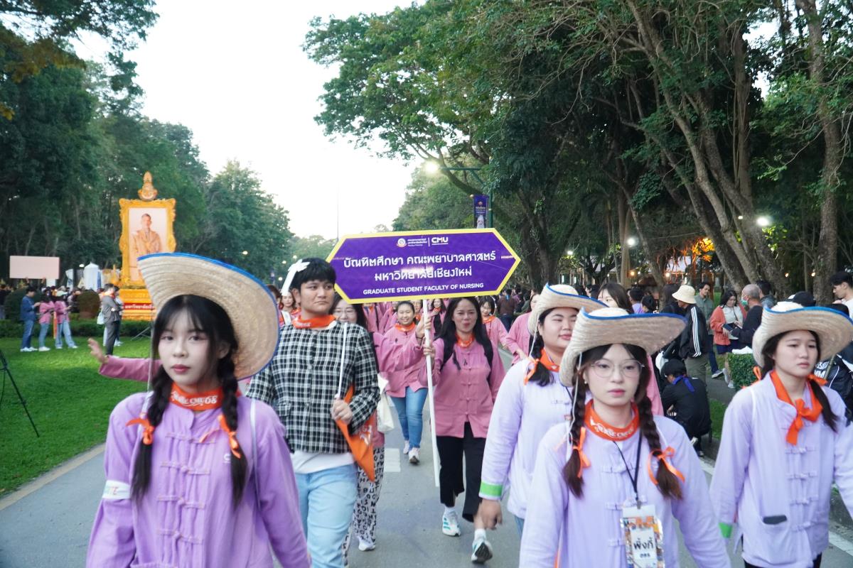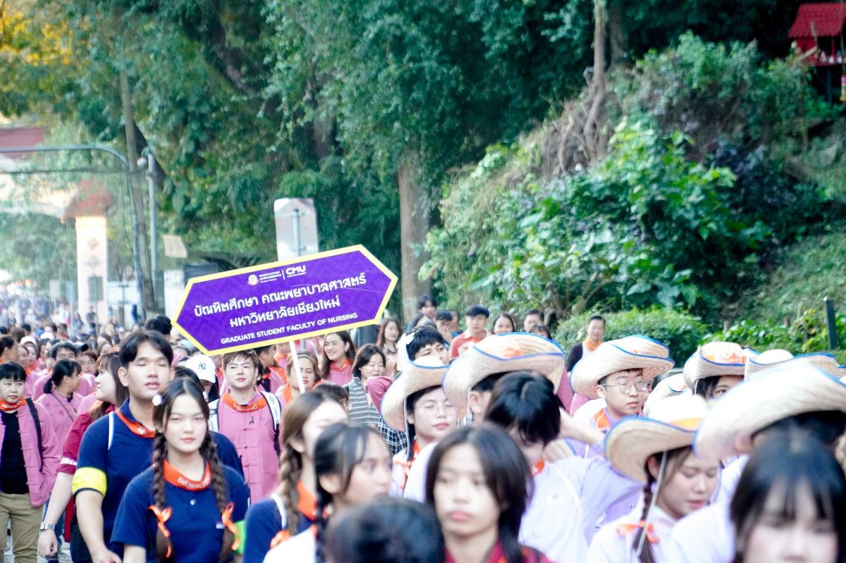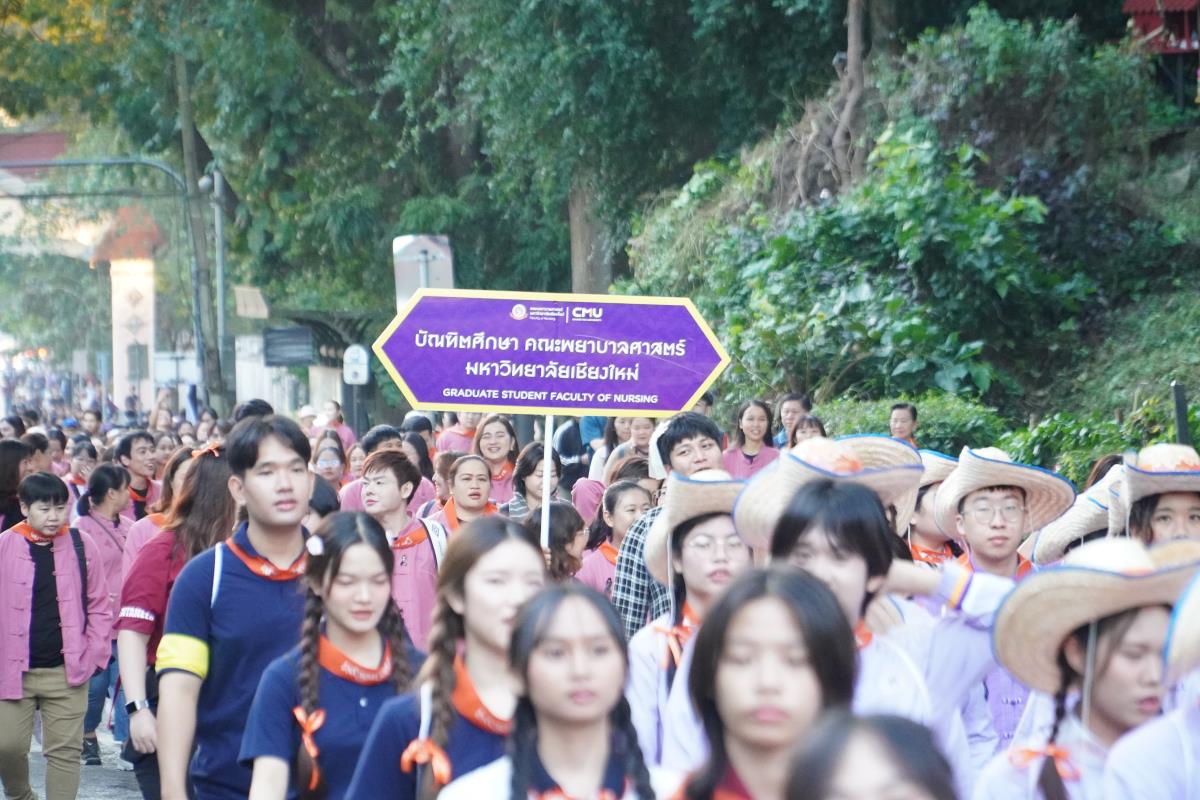 ในปีนี้ คณะพยาบาลศาสตร์ มหาวิทยาลัยเชียงใหม่ จัดรูปขบวนภายใต้ธีม "ร้อยรักศรัทธา สานเมตตา บูชาพระธาตุดอยสุเทพ" น้อมรำลึกพระมหากรุณาธิคุณ สมเด็จพระนางเจ้าสิริกิติ์ พระบรมราชินีนาถ พระบรมราชชนนีพันปีหลวง ผู้ทรงมีพระเมตตาต่อพสกนิกรทุกหมู่เหล่า สร้างคุณูปการภายใต้โครงการอันเนื่องมาจากพระราชดำริ ที่รวมถึงประชาชนในพื้นที่ราบสูงให้ได้รับโอกาสได้มีอาชีพ สามารถดำเนินวิถีชีวิตอย่างเป็นปกติสุขและมีคุณภาพ