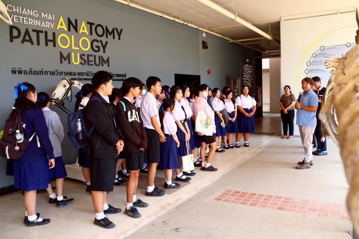 ในการนี้ คณะฯ ได้จัดกิจกรรมแนะนำภาพรวมด้านการจัดการเรียนการสอน โครงสร้างหลักสูตร แนวทางการศึกษาต่อในระดับอุดมศึกษา ตลอดจนระบบและกระบวนการรับสมัครนักศึกษาในหลักสูตรต่าง ๆ เพื่อเสริมสร้างความรู้ความเข้าใจเกี่ยวกับการศึกษาด้านสัตวแพทยศาสตร์แก่ผู้เข้าร่วมกิจกรรม นอกจากนี้ คณะนักเรียนยังได้เข้าเยี่ยมชมศูนย์การเรียนรู้และส่งเสริมสุขภาพทางสัตวแพทย์ภาคเหนือ (NOVEL CMU) โดยมี ผศ. ดร. น.สพ.อติกันต์ ทองทาบ รองคณบดีฝ่ายศูนย์ความเป็นเลิศทางคลินิกและการศึกษาหลังปริญญา เป็นผู้นำชม ต่อด้วยการเยี่ยมชมพิพิธภัณฑ์กายวิภาคและพยาธิวิทยาทางสัตวแพทย์ โดยมี อ. ดร. น.สพ.สนธยา อ่ำสำอาง อาจารย์ประจำสำนักวิชาสัตวแพทยศาสตร์ เป็นผู้นำคณะเข้าเยี่ยมชม เพื่อเปิดมุมมองเชิงปฏิบัติและเสริมสร้างความเข้าใจเกี่ยวกับการเรียนและการประกอบวิชาชีพด้านสัตวแพทยศาสตร์อย่างรอบด้านในอนาคต