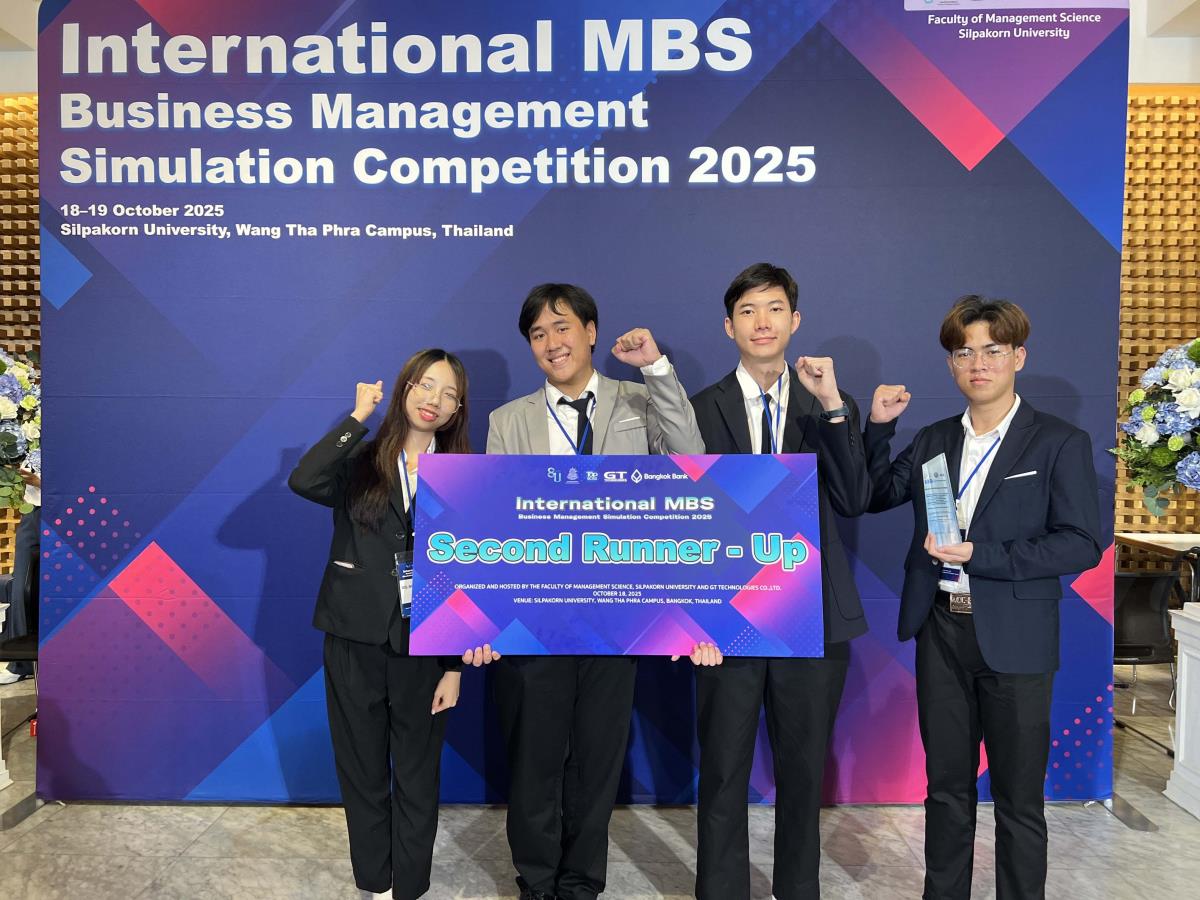 คณะบริหารธุรกิจ มหาวิทยาลัยเชียงใหม่ (CMUBS) ขอแสดงความยินดีกับทีมนักศึกษาคณะบริหารธุรกิจ ที่คว้ารางวัลรองชนะเลิศอันดับ 2 และรางวัลชมเชย จากการแข่งขัน “International MBS Business Management Simulation Competition 2025” ซึ่งจัดขึ้นเมื่อวันที่ 18 ตุลาคม 2568 โดยคณะวิทยาการจัดการ มหาวิทยาลัยศิลปากร ร่วมกับบริษัท จีที เทคโนโลยี จำกัด (GT Technology) และธนาคารกรุงเทพ จำกัด (มหาชน) จัดขึ้น ณ หอประชุมมหาวิทยาลัยศิลปากร วังท่าพระ กรุงเทพมหานคร