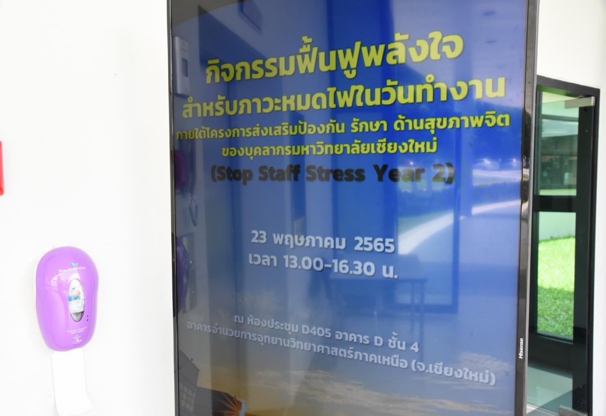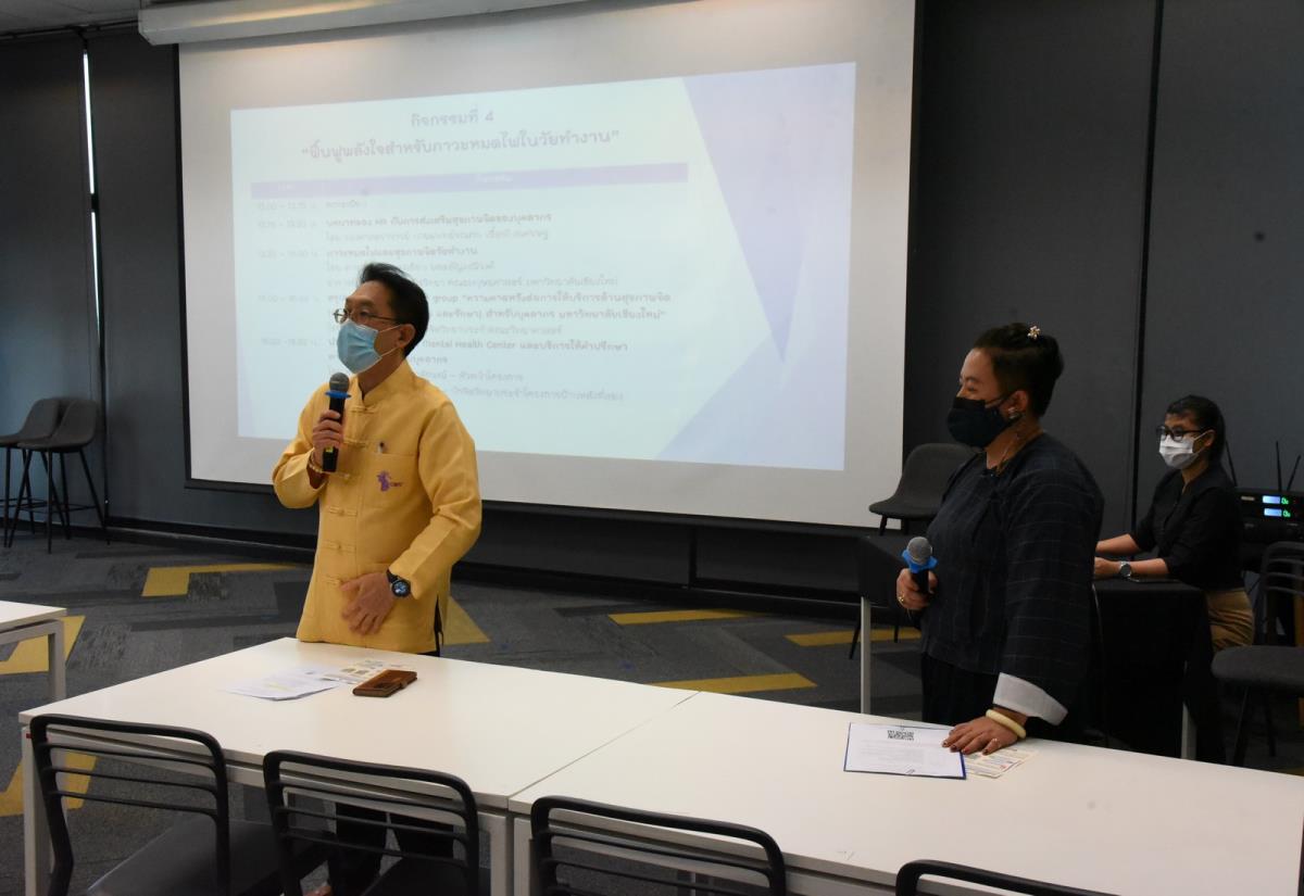 รองศาสตราจารย์ นพ.รณภพ เอื้อพันฐเศรษฐ ผู้ช่วยอธิการบดีมหาวิทยาลัยเชียงใหม่ เป็นประธานเปิดกิจกรรมและบรรยายเรื่อง บทบาทของ HR กับการส่งเสริมสุขภาพจิตของบุคลากร โครงการส่งเสริม ป้องกัน รักษา ด้านสุขภาพจิต ของบุคลากรมหาวิทยาลัยเชียงใหม่ (Stop Start Street Year 2) กิจกรรมที่ 4 ฟื้นฟูพลังใจสำหรับภาวะหมดไฟในวัยทำงาน เพื่อแลกเปลี่ยนเรียนรู้ ข้อคิดเห็นและข้อเสนอแนะต่างๆ ในการสร้างแรงบันดาลใจ ส่งเสริม ป้องกัน คัดกรอง และรักษา ตลอดจนการกระตุ้นและสร้างแรงผลักดันให้วัยทำงานที่มีสภาพกายใจที่ดีขึ้น สามารถปรับปรุงตนเองให้สามารถทำงานได้อย่างมีประสิทธิภาพ ณ ห้อง D405 NSP Training Hall อุทยานวิทยาศาสตร์และเทคโนโลยี มหาวิทยาลัยเชียงใหม่ (STeP) วันจันทร์ที่ 23 พฤษภาคม พ.ศ. 2565