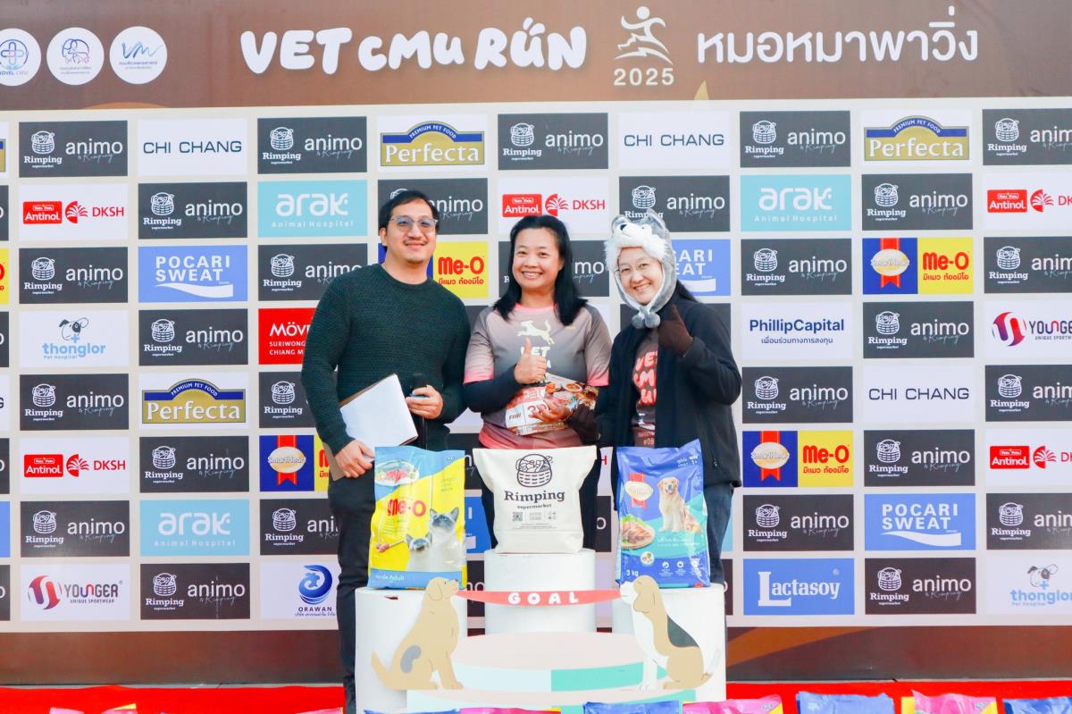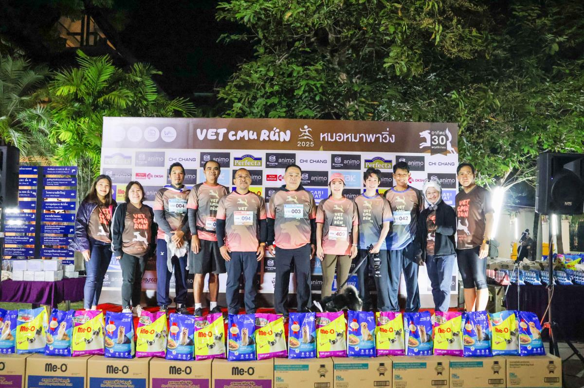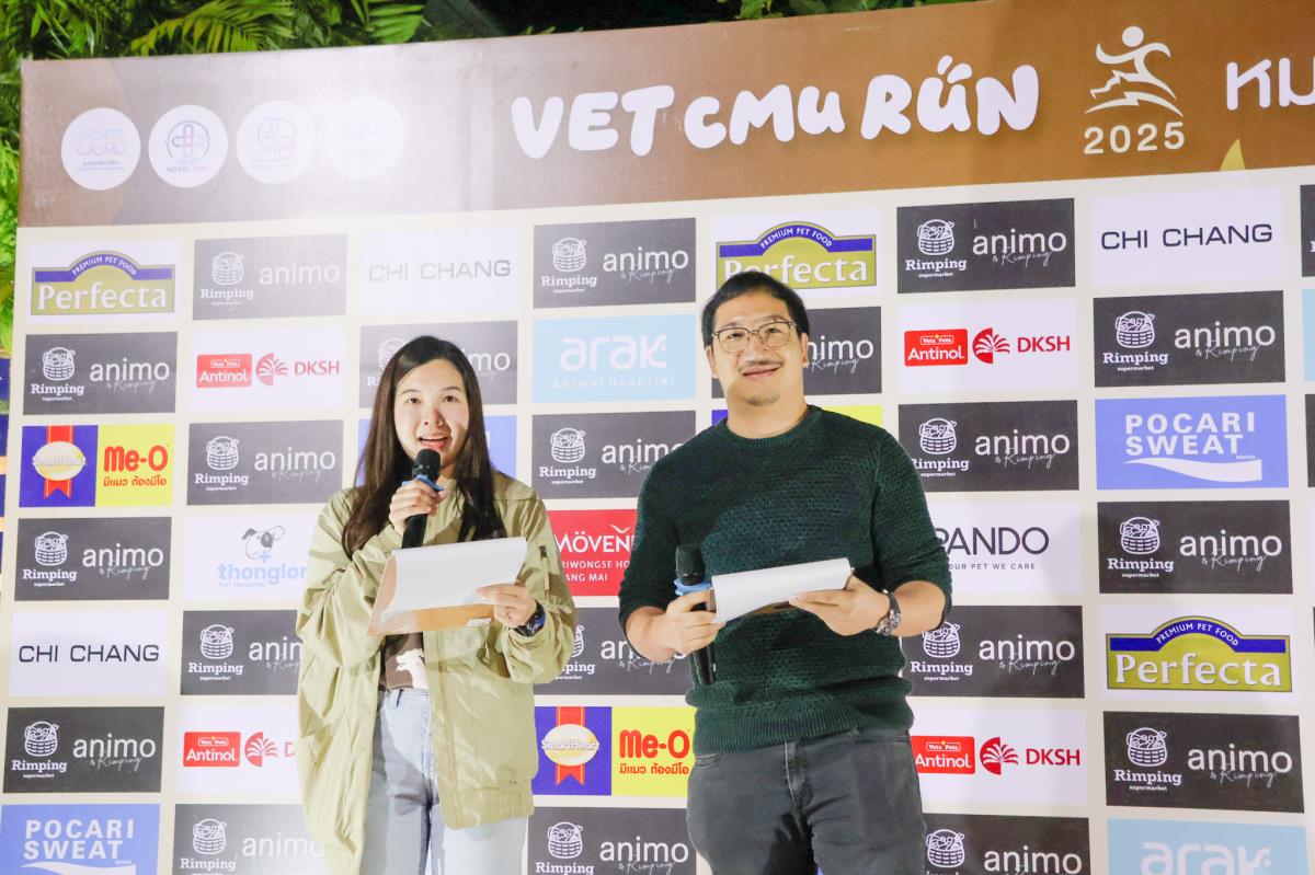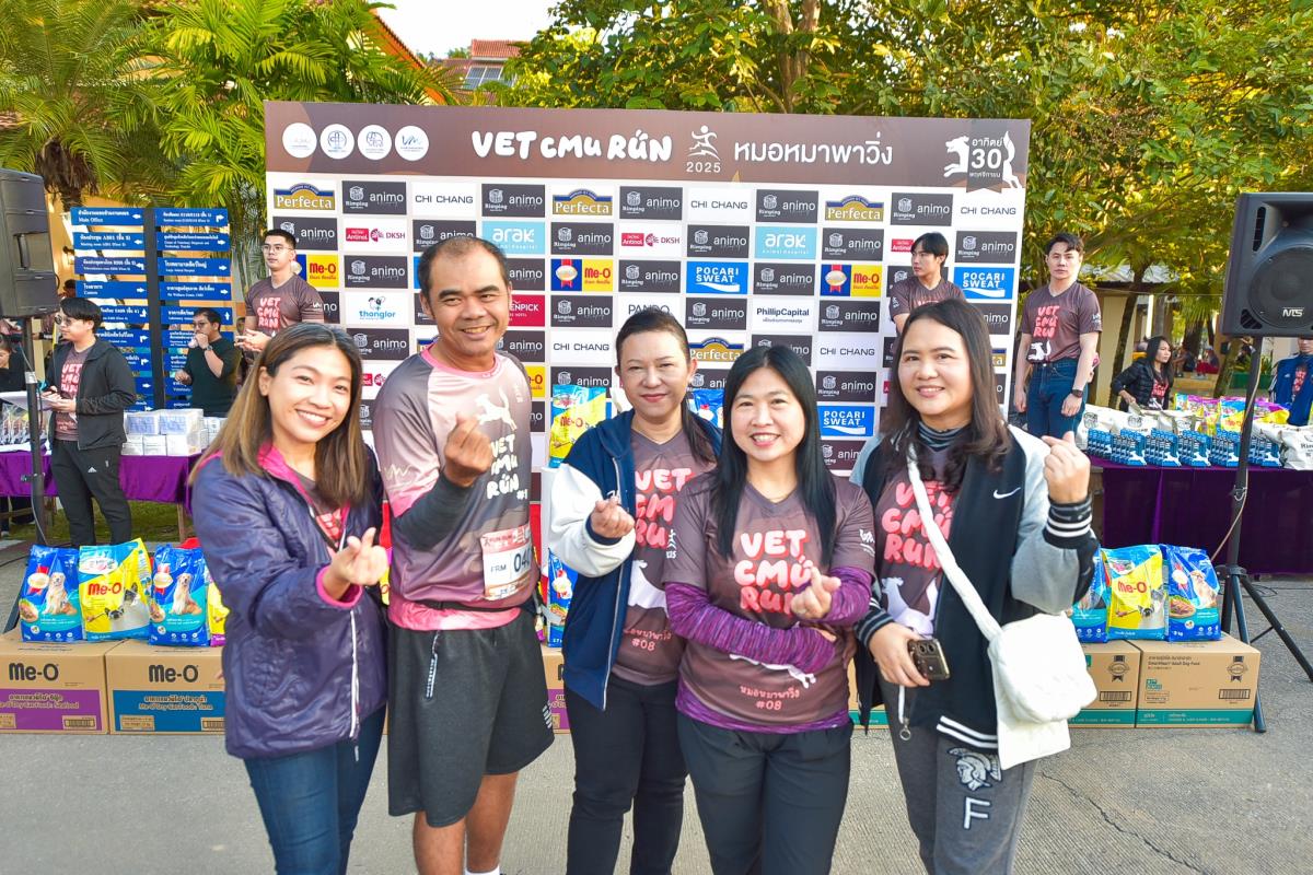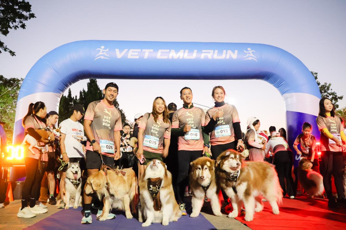 เมื่อวันที่ 30 พฤศจิกายน 2568 คณะสัตวแพทยศาสตร์ มหาวิทยาลัยเชียงใหม่ ได้จัดกิจกรรมเดิน–วิ่งการกุศล “หมอหมาพาวิ่ง ครั้งที่ 8 : VET CMU RUN 2025” ซึ่งยังคงเป็นกิจกรรมสำคัญที่ได้รับการตอบรับอย่างอบอุ่นจากนักวิ่งและผู้รักสัตว์ โดยได้รับเกียรติจาก ผศ. ดร.จิรวัฒน์ พัสระ ผู้ช่วยอธิการบดีมหาวิทยาลัยเชียงใหม่ เป็นประธานเปิดงาน ร่วมด้วย ศ. (เชี่ยวชาญพิเศษ) ดร.น.สพ.กรกฎ งานวงศ์พาณิชย์ คณบดีคณะสัตวแพทยศาสตร์ คณะผู้บริหาร บุคลากร และเครือข่ายศิษย์เก่า ร่วมต้อนรับผู้เข้าร่วมกว่า 1,400 คน พร้อมสุนัขกว่า 250 ตัว ที่มาสร้างสีสันและความสุขให้กับงานในปีนี้