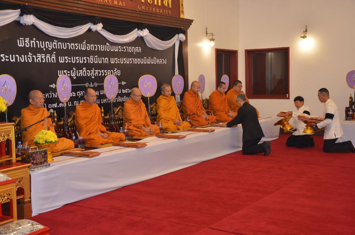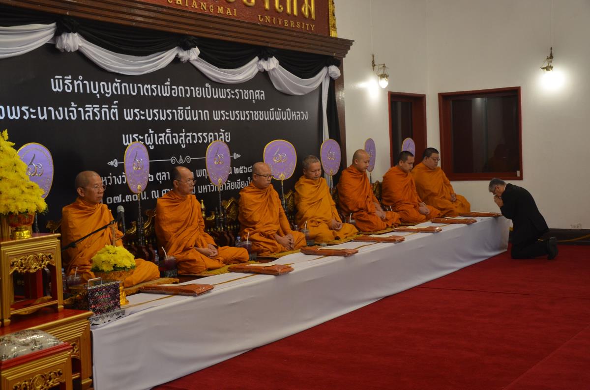 รองศาสตราจารย์ ดร.ประโยชน์ อุนจะนำ ผู้อำนวยการศูนย์การศึกษามหาวิทยาลัยเชียงใหม่ พร้อมด้วยพนักงานศูนย์การศึกษาฯ ร่วมพิธีทำบุญตักบาตรเพื่อถวายเป็นพระราชกุศล สมเด็จพระนางเจ้าสิริกิติ์ พระบรมราชินีนาถ พระบรมราชชนนีพันปีหลวง พระผู้เสด็จสู่สวรรคาลัย โดยมี พระเทพสิงหวราจารย์ (โสภณ โสภโณ) รองเจ้าคณะจังหวัดเชียงใหม่ เจ้าอาวาสวัดพระสิงห์วรมหาวิหาร พระอารามหลวง ประธานสงฆ์ นายอภิรักษ์ โกษะโยธิน อดีตผู้ว่าราชการกรุงเทพมหานครและนักศึกษาเก่าดีเด่นมหาวิทยาลัยเชียงใหม่ รองศาสตราจารย์ประเสริฐ ฤกษ์เกรียงไกร รองอธิการบดีมหาวิทยาลัยเชียงใหม่ รักษาการแทนอธิการบดี ผู้บริหาร คณาจารย์ ข้าราชการ พนักงาน เจ้าหน้าที่ บุคลากร และนักศึกษามหาวิทยาลัยเชียงใหม่ ร่วมพิธีฯ เมื่อวันที่ 29 ตุลาคม 2568 ณ ศาลาธรรม มหาวิทยาลัยเชียงใหม่