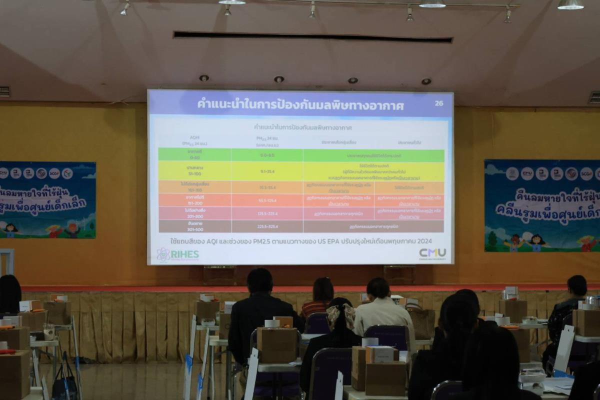 ทั้งนี้ มีครูและเจ้าหน้าที่ประจำศูนย์พัฒนาเด็กเล็กจากองค์กรปกครองส่วนท้องถิ่นในพื้นที่อำเภอเมือง อำเภอเชียงแสน และอำเภอแม่สาย จังหวัดเชียงราย เข้าร่วมกิจกรรมจำนวน 65 คน ร่วมกันเตรียมความพร้อมพัฒนาห้องปลอดฝุ่นสำหรับเด็กเล็กอย่างยั่งยืนต่อไป