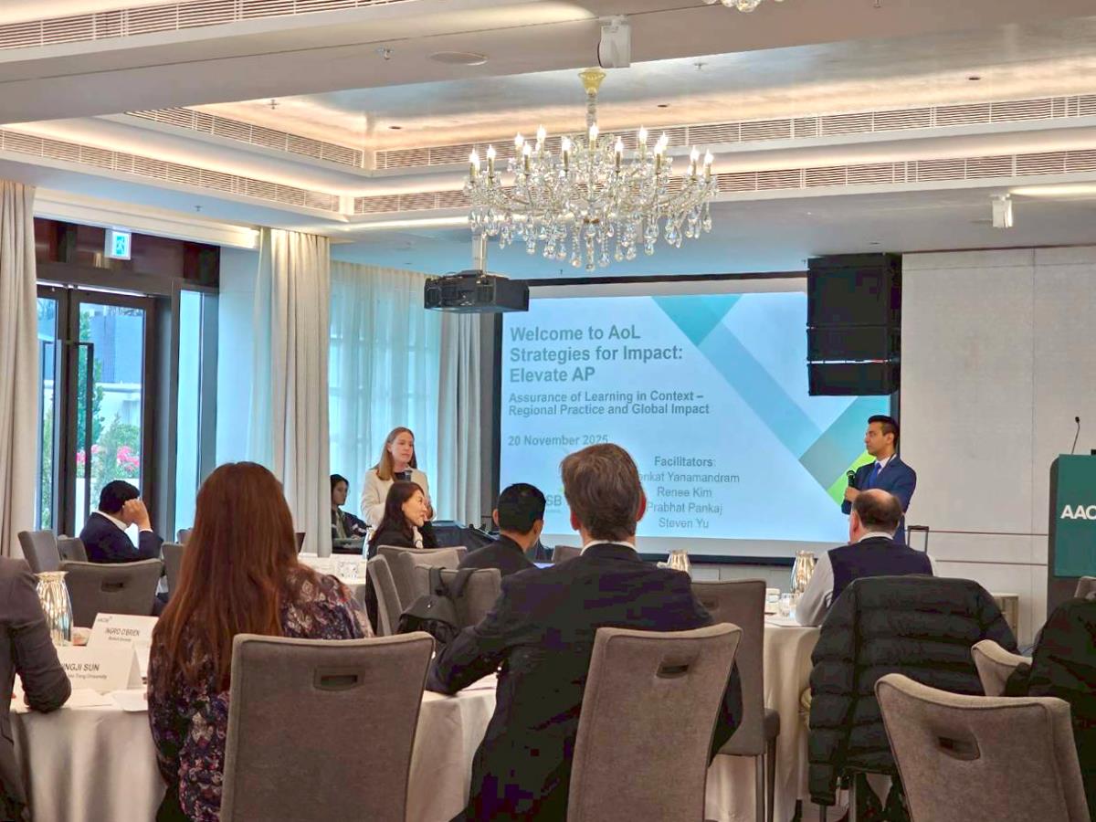 จากนั้น คณบดี พร้อมด้วยผู้บริหารและคณาจารย์ของคณะฯ ได้เข้าร่วมการประชุมวิชาการระดับนานาชาติ AACSB Elevate: Asia Pacific Conference และ AoL Strategies for Impact Conference ซึ่งจัดขึ้นระหว่างวันที่ 18-20 พฤศจิกายน 2568 ณ Hopewell Hotel เขตบริหารพิเศษฮ่องกง โดยแลกเปลี่ยนความรู้ ประสบการณ์ และสร้างเครือข่ายกับสถาบันบริหารธุรกิจชั้นนำทั่วโลก เพื่อพัฒนาและปรับปรุงคุณภาพการศึกษาให้เป็นไปตามเกณฑ์มาตรฐานระดับสากล AACSB