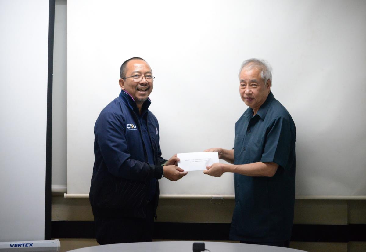 อาจารย์ ดร.จิรวัฒน์ พัสระ ผู้ช่วยอธิการบดีมหาวิทยาลัยเชียงใหม่ รับมอบทุนการศึกษา "มูลนิธินายริ้ว-นางหล้า-นางคาง้อ ศักดาทร" จากคุณภาณุพงศ์ ศักดาทร กรรมการผู้จัดการใหญ่ บริษัทนิยมพานิชจำกัด เพื่อเป็นทุนการศึกษาให้แก่นักศึกษามหาวิทยาลัยเชียงใหม่ที่ขาดแคลนทุนทรัพย์ ณ ห้องประชุม บริษัทนิยมพานิช จำกัด วันพุธที่ 5 มิถุนายน พ.ศ. 2567