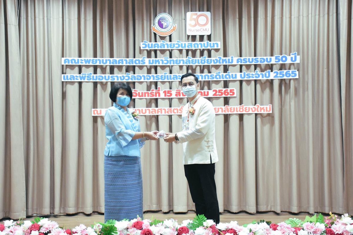 คณะพยาบาลศาสตร์ มหาวิทยาลัยเชียงใหม่ จัดพิธีทำบุญและสืบชะตา เนื่องในวันคล้ายวันสถาปนาครบรอบ 50 ปี และ วาระปีที่ 62 การศึกษาพยาบาล มช. โดยมี ผศ.ทพ.พิริยะ เชิดสถิรกุล รักษาการแทนรองอธิการบดีมหาวิทยาลัยเชียงใหม่ เป็นประธาน ภายในพิธีได้นิมนต์พระสงฆ์ 9 รูป จากวัดดับภัย จังหวัดเชียงใหม่ มาประกอบพิธีกรรมทางศาสนา หลังจากนั้น ผศ.ดร.ธานี แก้วธรรมานุกูล คณบดีคณะพยาบาลศาสตร์ เป็นประธานมอบโล่รางวัลอาจารย์และบุคลากรดีเด่น ประจำปี 2565 ประกอบด้วย อาจารย์ดีเด่น ด้านการจัดการเรียนการสอน ได้แก่ ผศ.ดร.สุภารัตน์ วังศรีคูณ อาจารย์ดีเด่น ด้านการวิจัย/นวัตกรรมทางการพยาบาล ได้แก่ รศ.ดร.อภิรดี นันท์ศุภวัฒน์ อาจารย์ดีเด่น ด้านคุณธรรม จริยธรรม ได้แก่ ศ.คลินิก ดร.พรรณพิไล ศรีอาภรณ์ อาจารย์ดีเด่น ด้านทำนุบำรุงศิลปวัฒนธรรม ได้แก่ ผศ.ดร.บุญชู อนุสาสนนันท์ บุคลากรดีเด่น สายปฏิบัติการ ได้แก่ คุณอานนท์ จินดาธรรม บุคลากรดีเด่น สายบริการ ได้แก่ คุณพิมพ์พร ทรัพย์เหม บุคลากรดีเด่น ด้านคุณธรรม จริยธรรม ได้แก่ คุณนุชนาท สุพรรณอุดม และ บุคลากรดีเด่น ด้านทำนุบำรุงศิลปวัฒนธรรม ได้แก่ คุณสมพิศ สุพรศิลป์