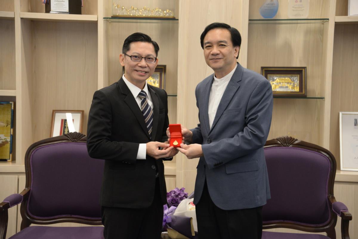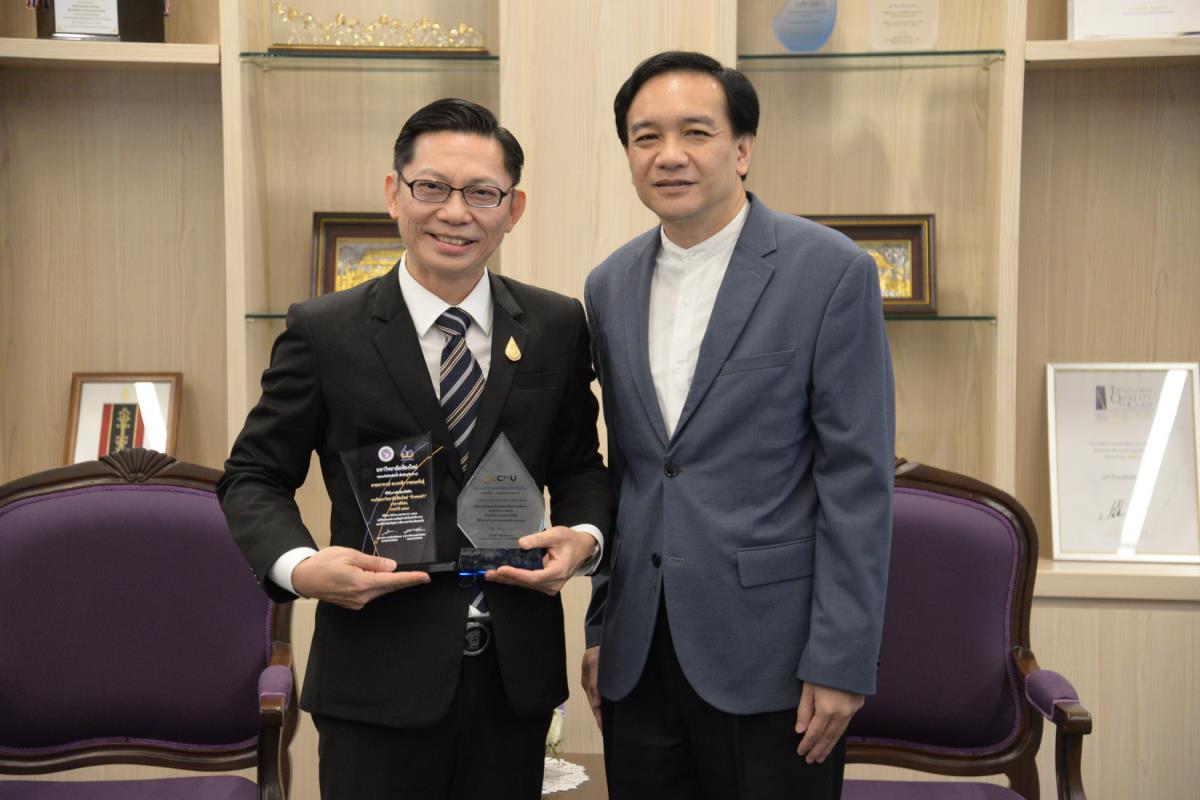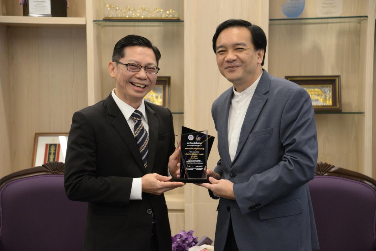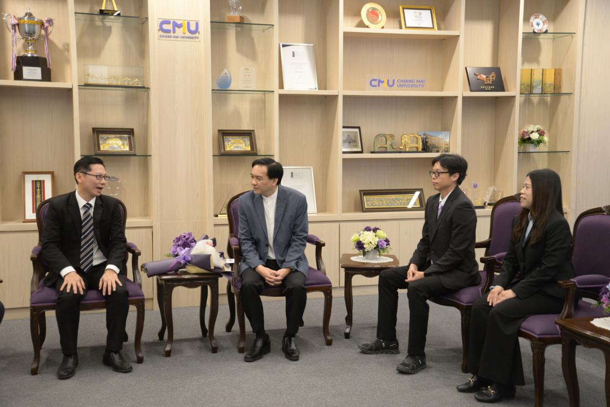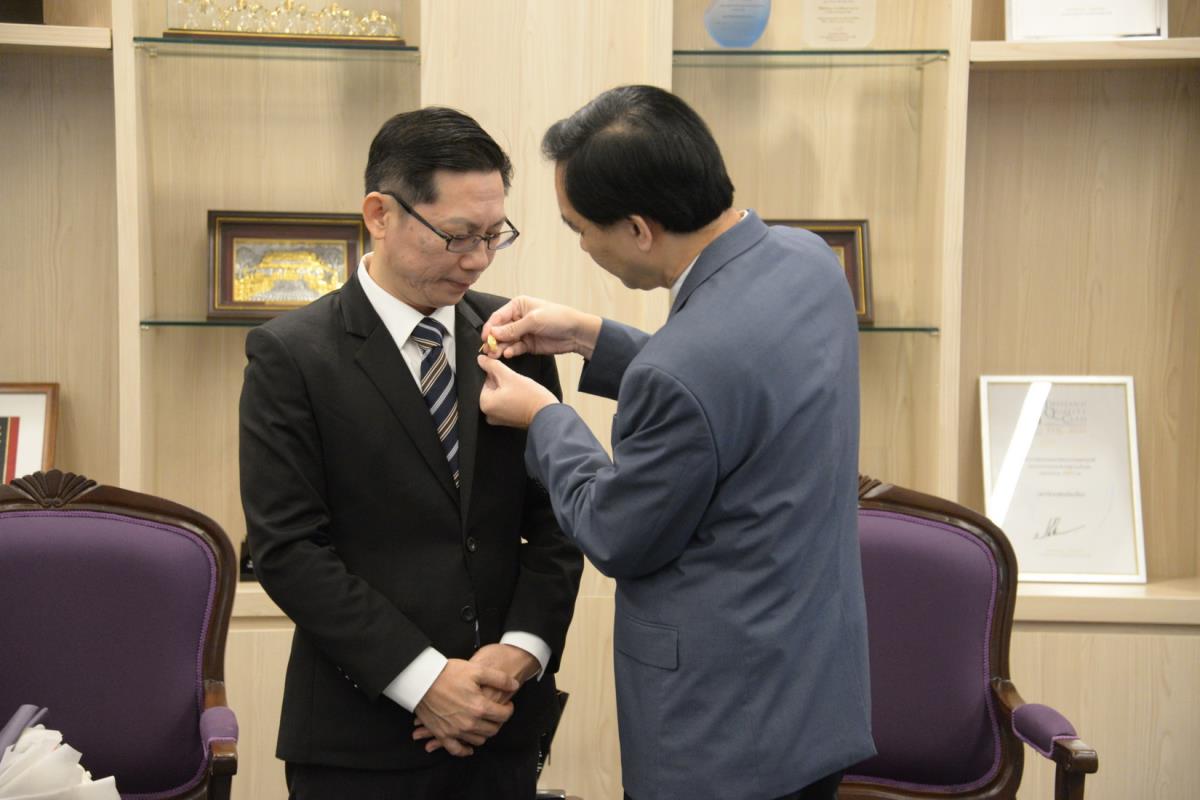 ศาสตราจารย์ปฏิบัติ ดร.ชรินทร์ เตชะพันธุ์ รองอธิการบดี ผู้แทนอธิการบดีมหาวิทยาลัยเชียงใหม่ มอบรางวัลมหาวิทยาลัยเชียงใหม่ “ช้างทองคำ” ประจำปี 2567 รางวัลรางวัลอาจารย์ดีเด่น สาขาวิชาวิทยาศาสตร์และเทคโนโลยี แด่ ศาสตราจารย์ ดร. พรชัย ราชตนะพันธุ์ คณะอุตสาหกรรมเกษตร มหาวิทยาลัยเชียงใหม่ ณ ห้องรับรอง มล.ปิ่น มาลากุล อาคารสำนักงานมหาวิทยาลัย 1 มหาวิทยาลัยเชียงใหม่ วันพฤหัสบดีที่ 13 กุมภาพันธ์ พ.ศ. 2568