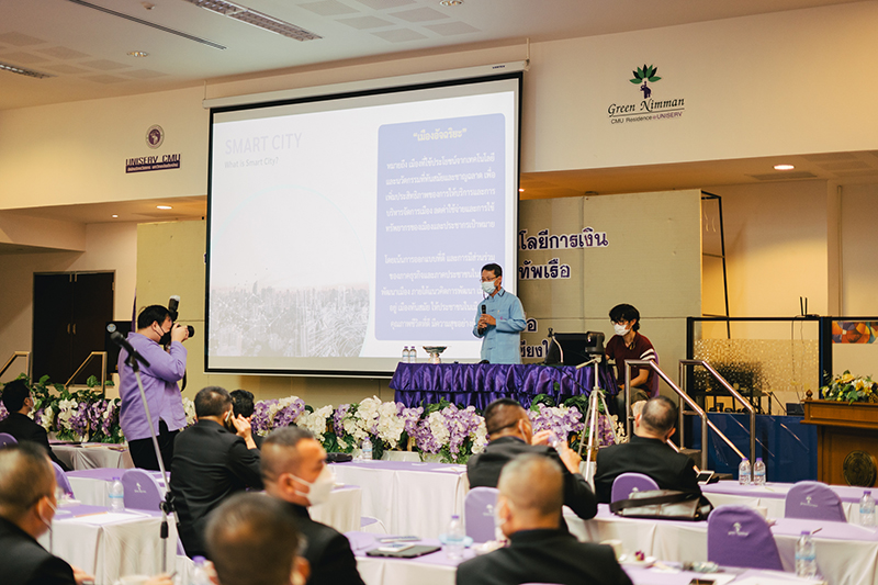 วันที่ 26 พฤศจิกายน 2564 ผศ.ดร.วรพจน์ เสรีรัฐ ผู้อำนวยการศูนย์บริหารจัดการเมืองอัจฉริยะมหาวิทยาลัยเชียงใหม่ ได้เข้าร่วมการบรรยายสรุป เรื่อง นวัติกรรมเทคโนโลยีดิจิทัลและการเงิน รวมไปถึงการทำงานของศูนย์บริการจัดการเมืองอัจฉริยะมหาวิทยาลัยเชียงใหม่ ในด้านการจัดการเมืองอัจฉริยะ การจราจร การรักษาความปลอดภัย และระบบขนส่งมวลชน แก่คณะผู้เข้ารับการศึกษาในหลักสูตรวิทยาลัยกองทัพเรือ รุ่นที่ 54 วิทยาลัยการทัพเรือ กรมยุทธศึกษาทหารเรือ