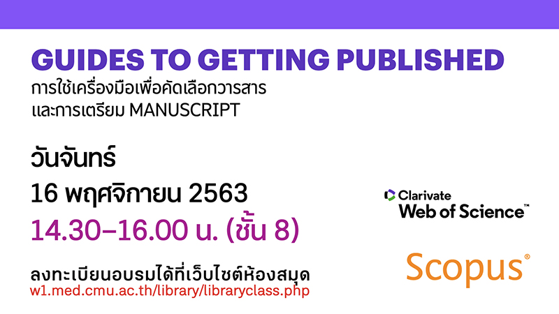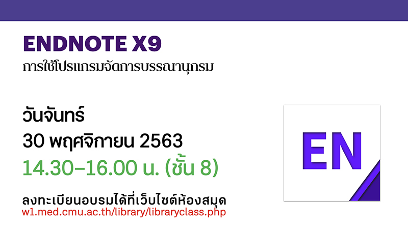ห้องสมุดคณะแพทยศาสตร์ ขอเชิญร่วมการอบรม LIBRARY CLASS ประจำเดือนพฤศจิกายน 2563