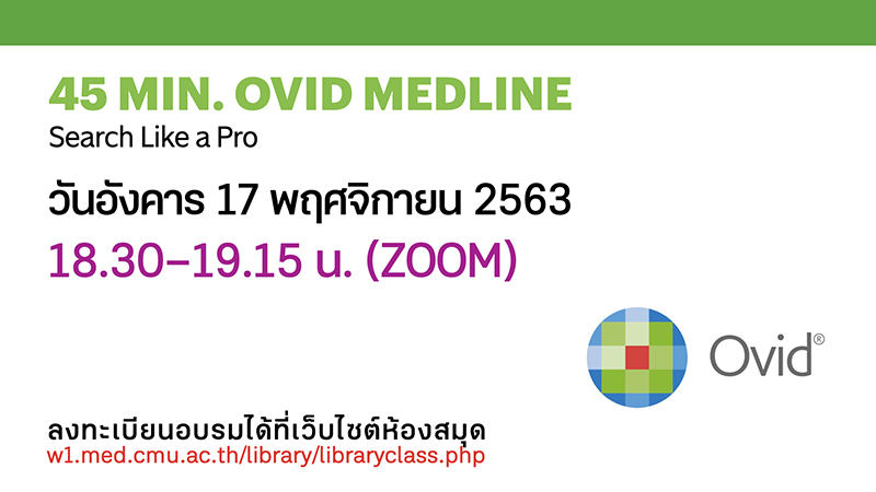 ห้องสมุดคณะแพทยศาสตร์ เชิญร่วมการอบรม LIBRARY CLASS ประจำเดือนพฤศจิกายน 2563 ผ่านโปรแกรม Zoom และในห้องสมุดคณะแพทยศาสตร์