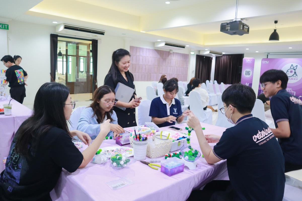 บรรยากาศภายในงานเป็นไปอย่างอบอุ่นและสนุกสนาน ผู้เข้าร่วมกิจกรรมได้แลกเปลี่ยนความคิดเห็นและประสบการณ์การดูแลสุนัข พร้อมร่วมทำกิจกรรม “ร้อยปลอกคอให้สุนัข มช.