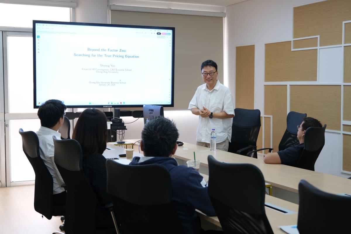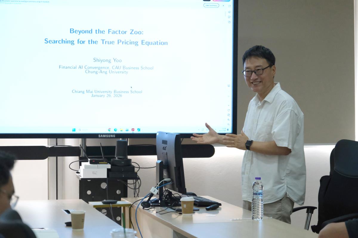 วันที่ 26 มกราคม 2569 ภาควิชาการเงิน คณะบริหารธุรกิจ มหาวิทยาลัยเชียงใหม่ (CMUBS) จัดกิจกรรมอบรม Research Talk สำหรับคณาจารย์และผู้สนใจ ในหัวข้อ “Which Factors Matter in the Korean Factor Zoo” ณ ห้องประชุม 4 คณะบริหารธุรกิจ มหาวิทยาลัยเชียงใหม่ โดยได้รับเกียรติจาก Professor Shiyong Yoo หัวหน้าสาขา Financial AI Convergence จาก CAU Business School, Chung-Ang University (CAU) สาธารณรัฐเกาหลี (เกาหลีใต้) เป็นวิทยากรบรรยาย
