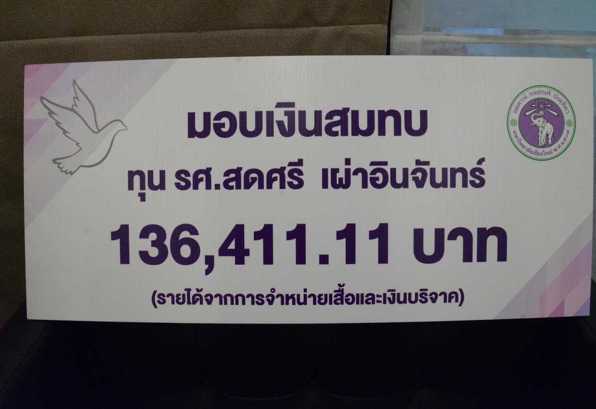 ศาสตราจารย์ปฏิบัติ ดร.ชรินทร์ เตชะพันธุ์ และผู้ช่วยศาสตราจารย์ ดร.ปิติพงษ์ ยอดมงคล รองอธิการบดีมหาวิทยาลัยเชียงใหม่ รับมอบเงินสมทบทุน รองศาสตราจารย์ สดศรี เผ่าอินจันทร์ จำนวน 136,411.11 บาท จาก ดร.นงค์นาถ ศรีสกุล ห่านวิไล ประธานกรรมการทุน รองศาสตราจารย์ สดศรี เผ่าอินจันทร์ เพื่อจัดสรรเป็นทุนการศึกษาปีละ 6 ทุน ทุนละ 10,000 บาท แก่นักศึกษาคณะการสื่อสารมวลชน ที่เรียนดี มีความประพฤติดี แต่ขาดแคลนทุนทรัพย์ ซึ่งเงินจำนวนดังกล่าวเป็นรายได้จากการจำหน่ายเสื้อและเงินบริจาคจากศิษย์เก่า ศิษย์ปัจจุบันคณะการสื่อสารมวลชน และผู้ที่สนใจ โดยมีรองศาสตราจารย์สดศรี เผ่าอินจันทร์ พร้อมด้วยคุณศรีสุดา ชวชาติ ศรีสุโข และ ดร.จิรพร วิทยศักดิ์พันธุ์ ร่วมมอบ ณ ห้องรับรองหม่อมหลวงปิ่น มาลากุล อาคารสำนักงานมหาวิทยาลัย 1 วันพุธที่ 30 สิงหาคม พ.ศ. 2566