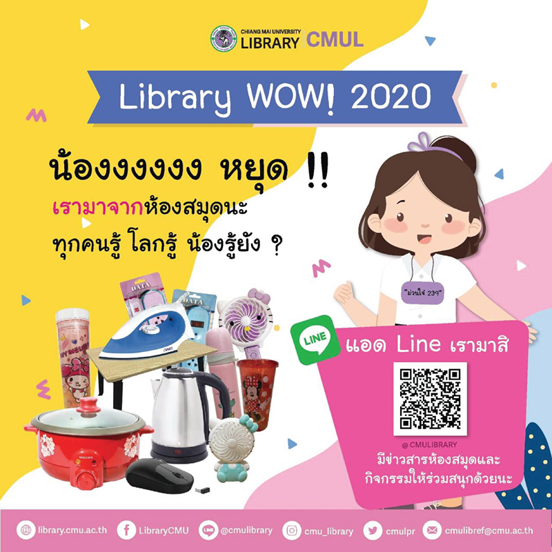 เชิญน้องใหม่ร่วมกิจกรรมสนุกผ่านทาง Line official: @cmulibrary หรือ
