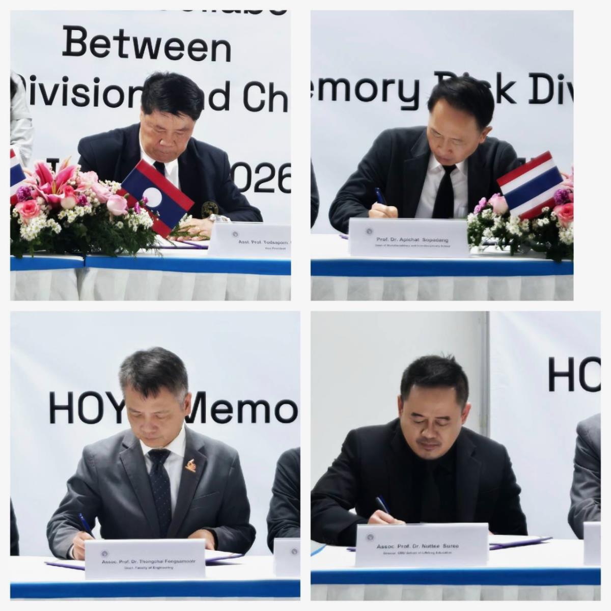 ผู้ช่วยศาสตราจารย์ ทศพร พิชัยยา รองอธิการบดีมหาวิทยาลัยเชียงใหม่ และ Mr. Sakol Chindasirirote, Senior General Manager, Mass Manufacturing Laos, HOYA LAOS CO., LTD. ร่วมลงนามบันทึกข้อตกลงความร่วมมือทางวิชาการ ระหว่าง HOYA LAOS CO., LTD. และ มหาวิทยาลัยเชียงใหม่ เพื่อเสริมสร้างความร่วมมือทางวิชาการ การพัฒนาศักยภาพบุคลากร การสนับสนุนโครงการพัฒนาศักยภาพผู้บริหารและวิศวกรสู่ความเป็นเลิศ ตลอดจนด้านการผลิตและด้านคุณภาพให้แก่พนักงานภายในองค์กร โดยมี Mr. Marumo Yoshinori, MD Division President Ms. Pornpimon Maneewongwattana, Vice President, Global HR and Ms. Umawadee Nuchniyom, Vice President, Global QA ศาสตราจารย์ ดร.อภิชาต โสภาแดง คณบดีวิทยาลัยพหุวิทยาการและสหวิทยาการ รองศาสตราจารย์ ดร.ธงชัย ฟองสมุทร คณบดีคณะวิศวกรรมศาสตร์ และรองศาสตราจารย์ ดร.นัทธี สุรีย์ ผู้อำนวยการวิทยาลัยการศึกษาตลอดชีวิต มหาวิทยาลัยเชียงใหม่ ร่วมเป็นสักขีพยาน ณ บริษัท HOYA LAOS CO., LTD.ประเทศสาธารณรัฐประชาธิปไตยประชาชนลาว วันที่ 13-14 มกราคม พ.ศ. 2569