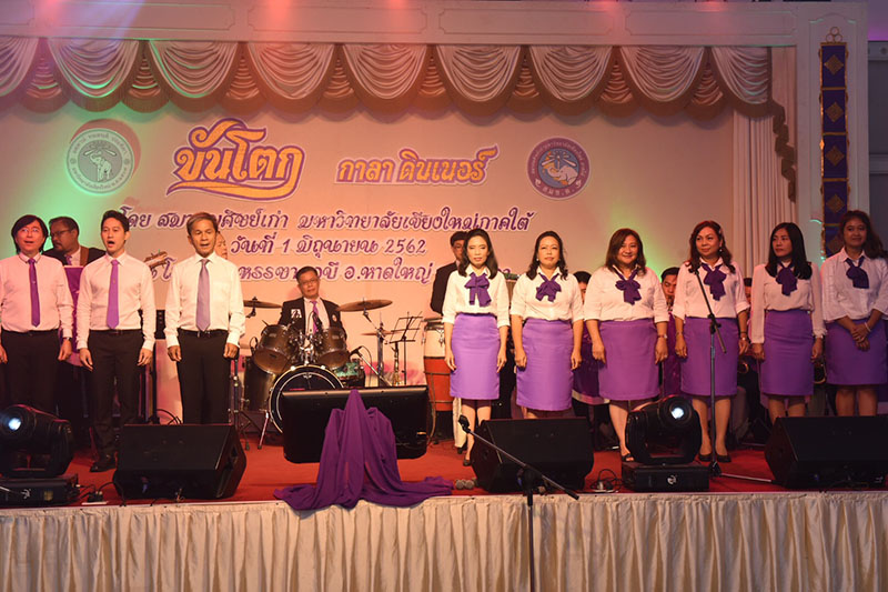 สมาคมศิษย์เก่ามหาวิทยาลัยเชียงใหม่ภาคใต้ จัดงาน “ขันโตก กาลาดินเนอร์” เพื่อพบปะสังสรรค์ระหว่างพี่น้องศิษย์เก่ามหาวิทยาลัยเชียงใหม่ และรำลึกถึงวัฒนธรรมของล้านนา ให้เกิดความผูกพันธ์รักและคิดถึงต่อมหาวิทยาลัย โดยมีศาสตราจารย์ นายแพทย์นิเวศน์ นันทจิต อธิการบดีมหาวิทยาลัยเชียงใหม่ ประธานในพิธีฯ และ ดร.สุรชัย จิตภักดีบดินทร์ นายกสมาคมนักศึกษาเก่ามหาวิทยาลัยเชียงใหม่ ภาคใต้ กล่าวต้อนรับ พร้อมด้วยคณะผู้บริหารมหาวิทยาลัยเชียงใหม่ นักศึกษาเก่าที่อยู่ในจังหวัดสงขลาและจังหวัดใกล้เคียง ร่วมงานกว่า 350 คน ณ โรงแรมหรรษา เจ.บี. อําเภอหาดใหญ่ จังหวัดสงขลา เมื่อวันเสาร์ที่ 1 มิถุนายน พ.ศ.2562