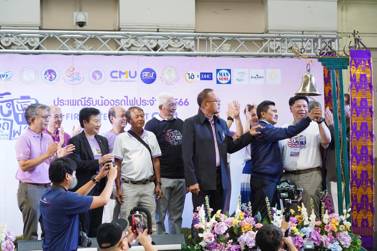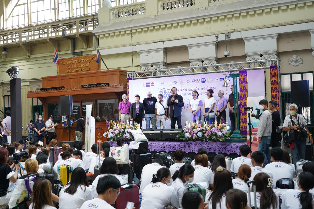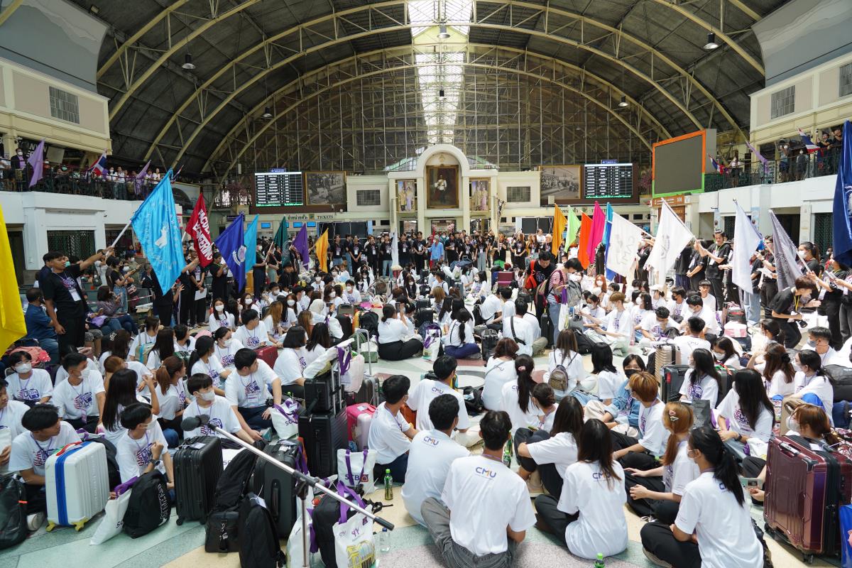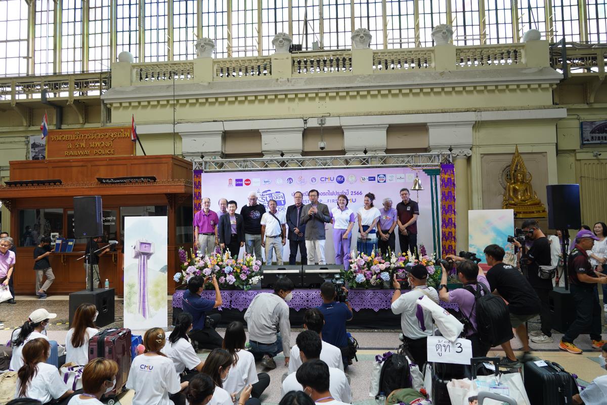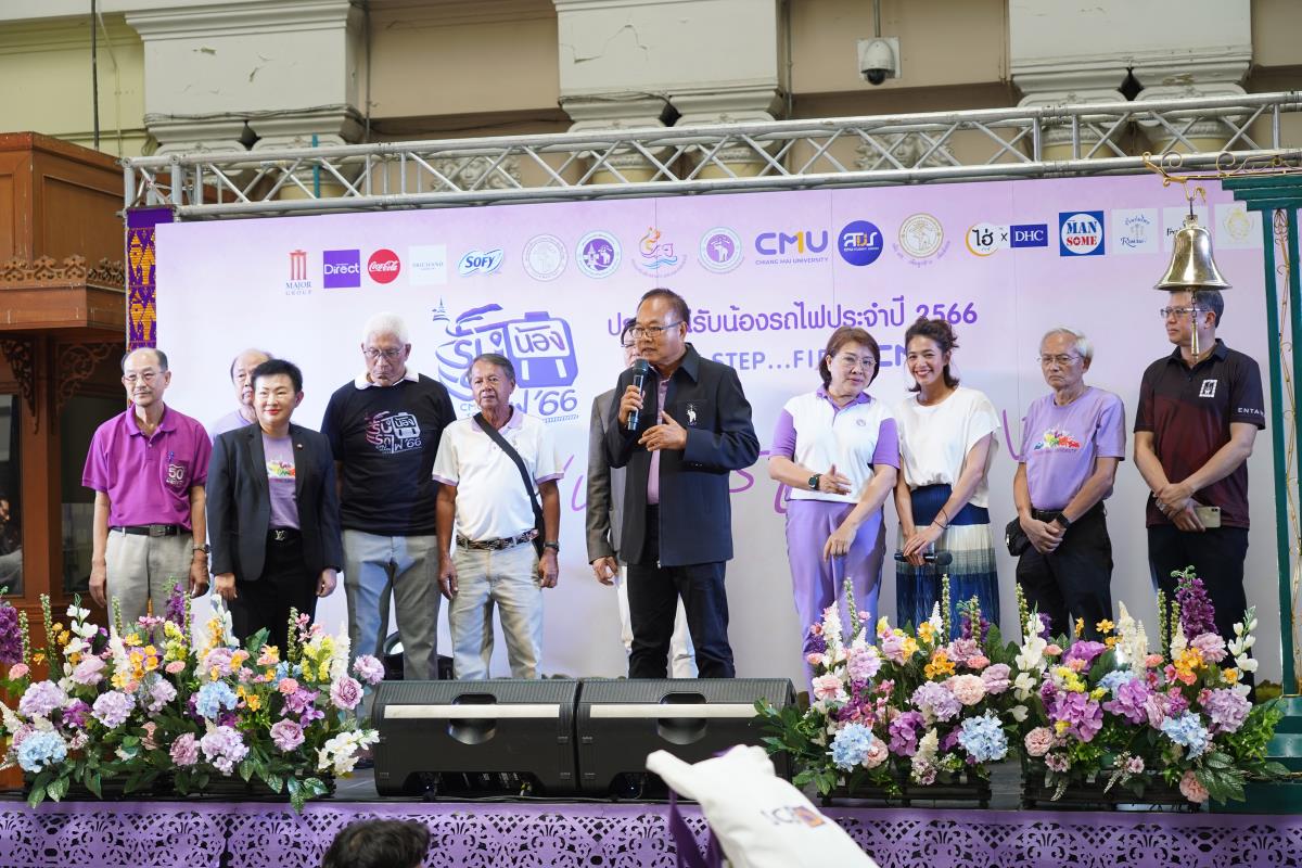 สโมสรนักศึกษามหาวิทยาลัยเชียงใหม่ จัดประเพณีรับน้องรถไฟ ปี 2566 นำรถไฟขบวนพิเศษ 12 โบกี้รับน้องใหม่จำนวน 239 คน ออกเดินทางจากสถานีรถไฟหัวลำโพง กรุงเทพฯ มุ่งสู่สถานีรถไฟเชียงใหม่ โดยมี ผู้ช่วยศาสตราจารย์ทศพร พิชัยยา รองอธิการบดีมหาวิทยาลัยเชียงใหม่ ประธานในพิธีเปิด, คุณประสิทธิ์ ถาวร ผู้อำนวยการฝ่ายบริการโดยสาร การรถไฟแห่งประเทศไทย กล่าวต้อนรับ ณ สถานีรถไฟหัวลำโพง กรุงเทพ เมื่อวันศุกร์ที่ 2 มิถุนายน 2566