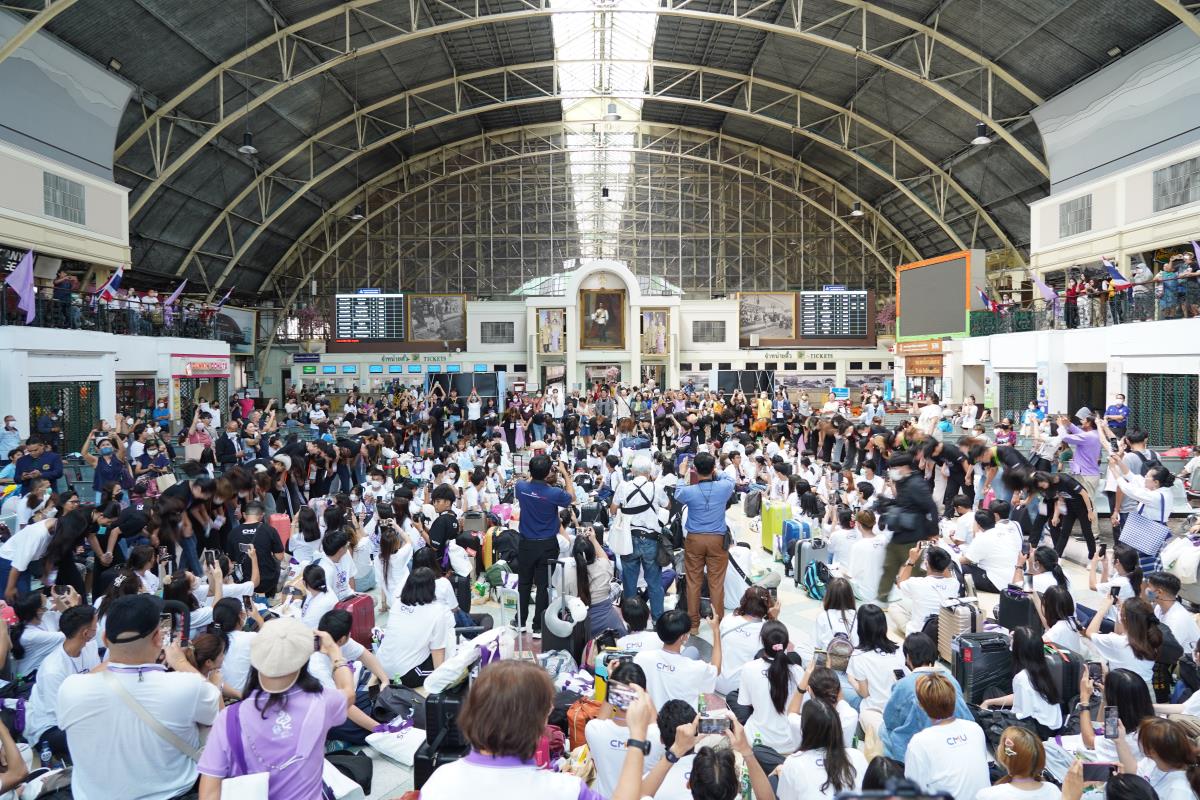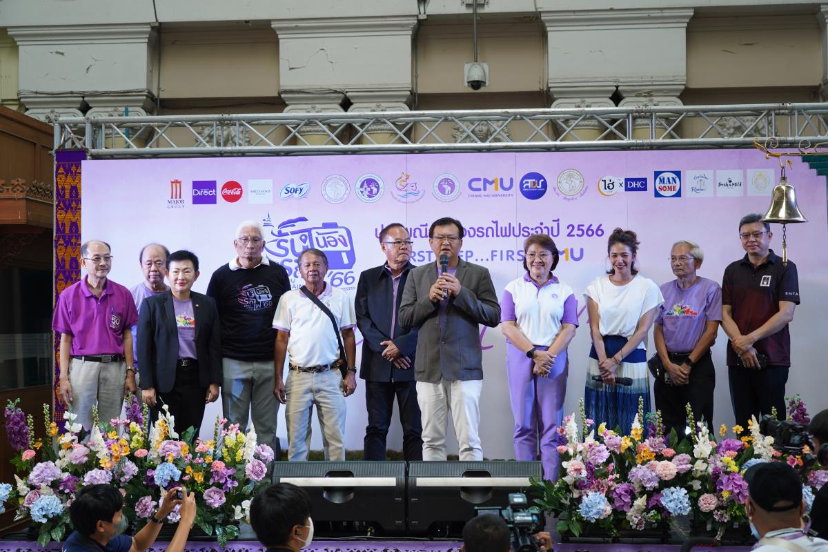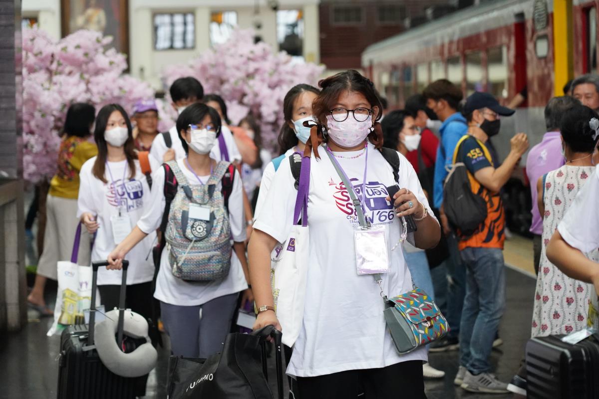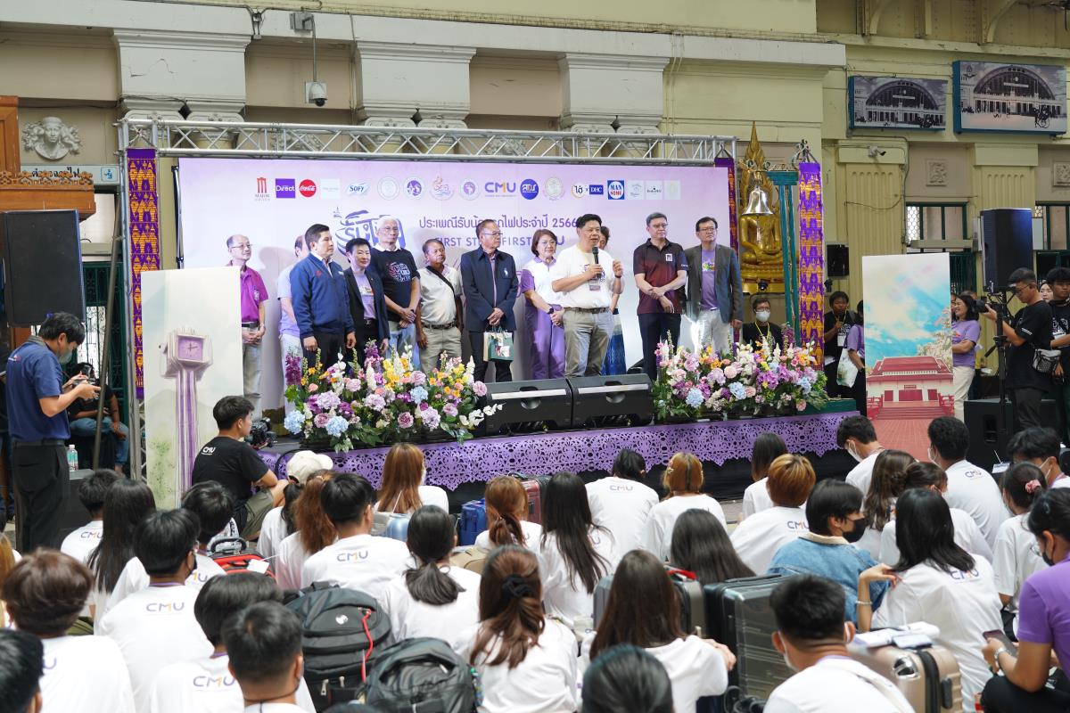 สโมสรนักศึกษามหาวิทยาลัยเชียงใหม่ จัดประเพณีรับน้องรถไฟ ปี 2566 นำรถไฟขบวนพิเศษ 12 โบกี้รับน้องใหม่จำนวน 239 คน ออกเดินทางจากสถานีรถไฟหัวลำโพง กรุงเทพฯ มุ่งสู่สถานีรถไฟเชียงใหม่ โดยมี ผู้ช่วยศาสตราจารย์ทศพร พิชัยยา รองอธิการบดีมหาวิทยาลัยเชียงใหม่ ประธานในพิธีเปิด, คุณประสิทธิ์ ถาวร ผู้อำนวยการฝ่ายบริการโดยสาร การรถไฟแห่งประเทศไทย กล่าวต้อนรับ ณ สถานีรถไฟหัวลำโพง กรุงเทพ เมื่อวันศุกร์ที่ 2 มิถุนายน 2566