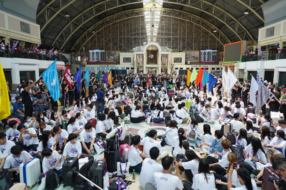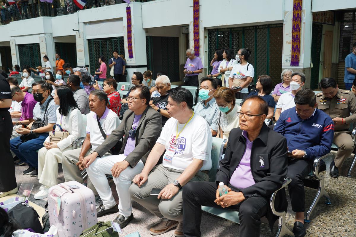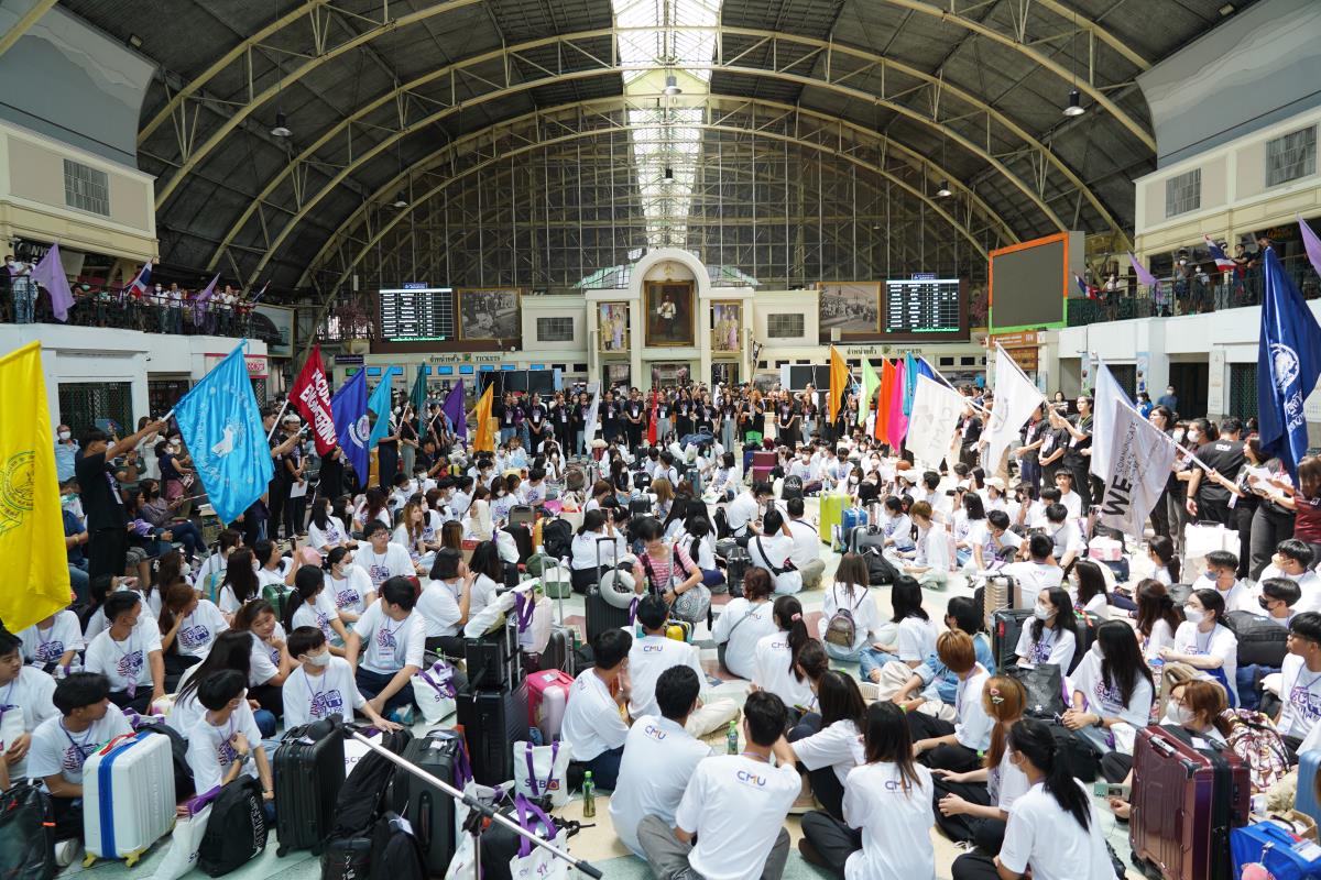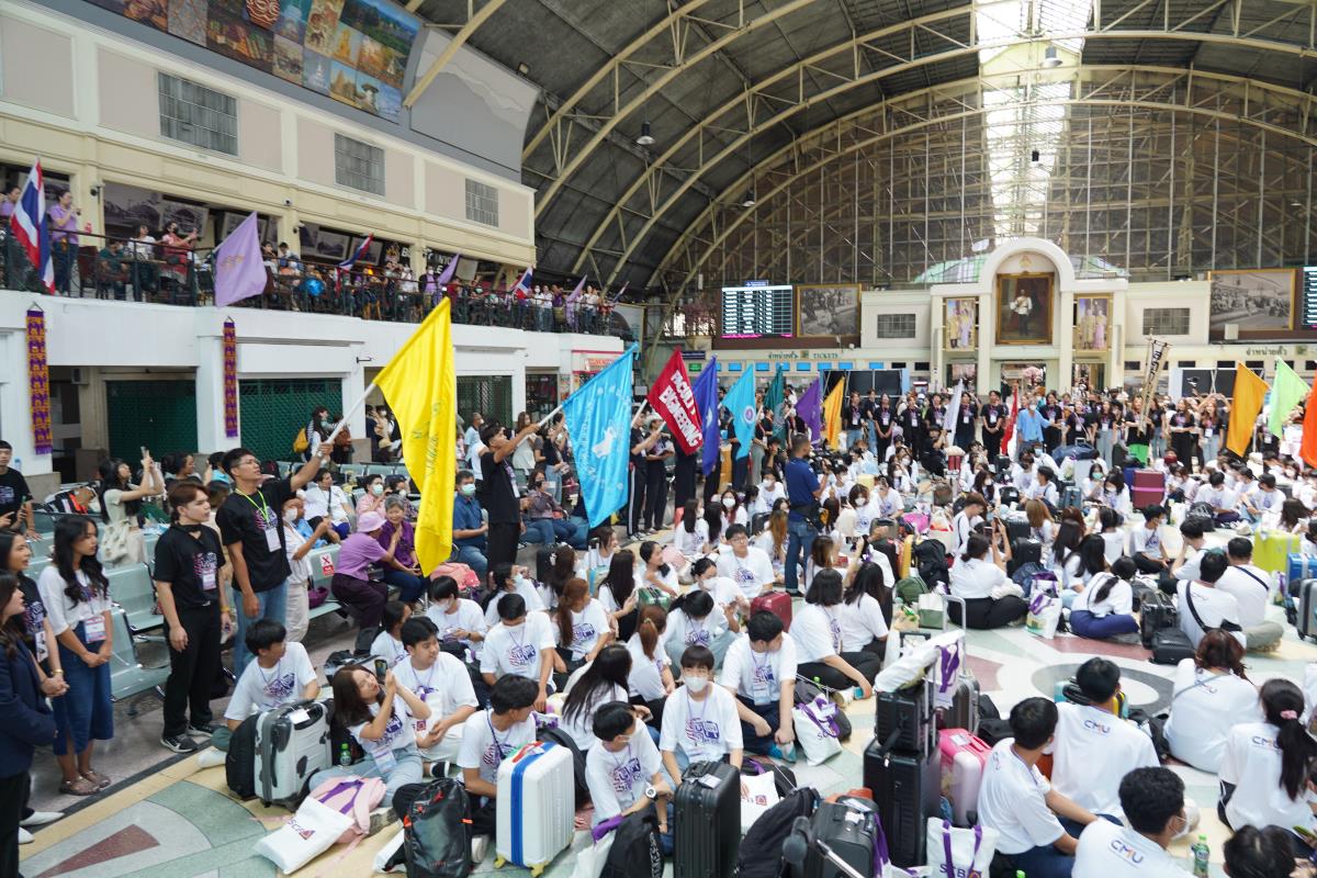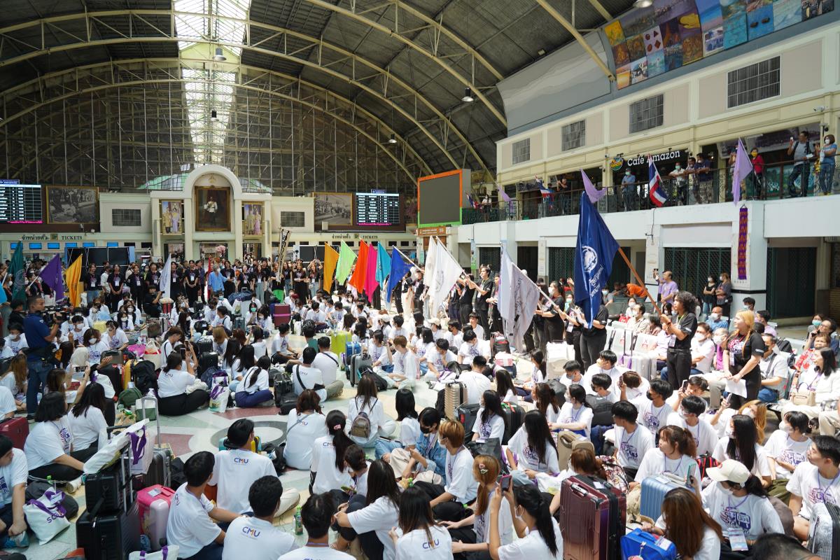 สโมสรนักศึกษามหาวิทยาลัยเชียงใหม่ จัดประเพณีรับน้องรถไฟ ปี 2566 นำรถไฟขบวนพิเศษ 12 โบกี้รับน้องใหม่จำนวน 239 คน ออกเดินทางจากสถานีรถไฟหัวลำโพง กรุงเทพฯ มุ่งสู่สถานีรถไฟเชียงใหม่ โดยมี ผู้ช่วยศาสตราจารย์ทศพร พิชัยยา รองอธิการบดีมหาวิทยาลัยเชียงใหม่ ประธานในพิธีเปิด, คุณประสิทธิ์ ถาวร ผู้อำนวยการฝ่ายบริการโดยสาร การรถไฟแห่งประเทศไทย กล่าวต้อนรับ ณ สถานีรถไฟหัวลำโพง กรุงเทพ เมื่อวันศุกร์ที่ 2 มิถุนายน 2566