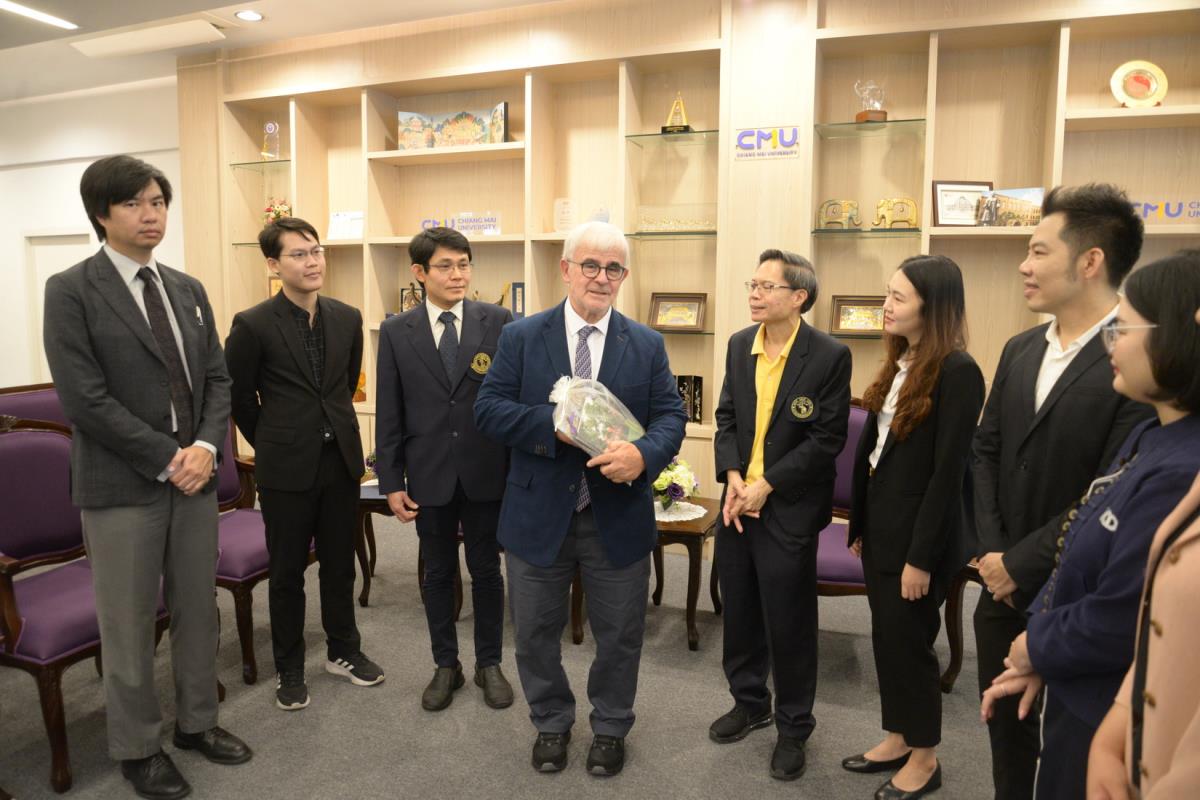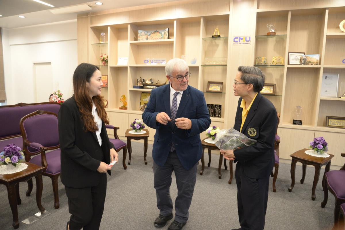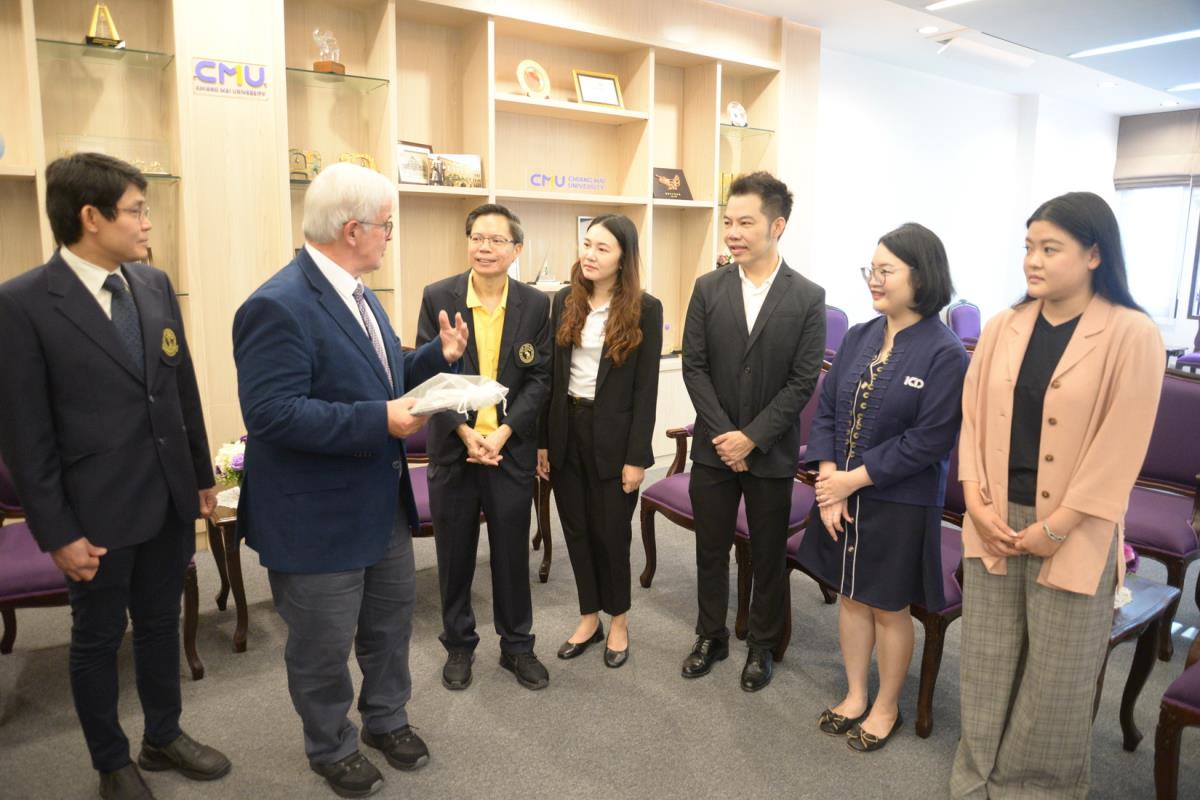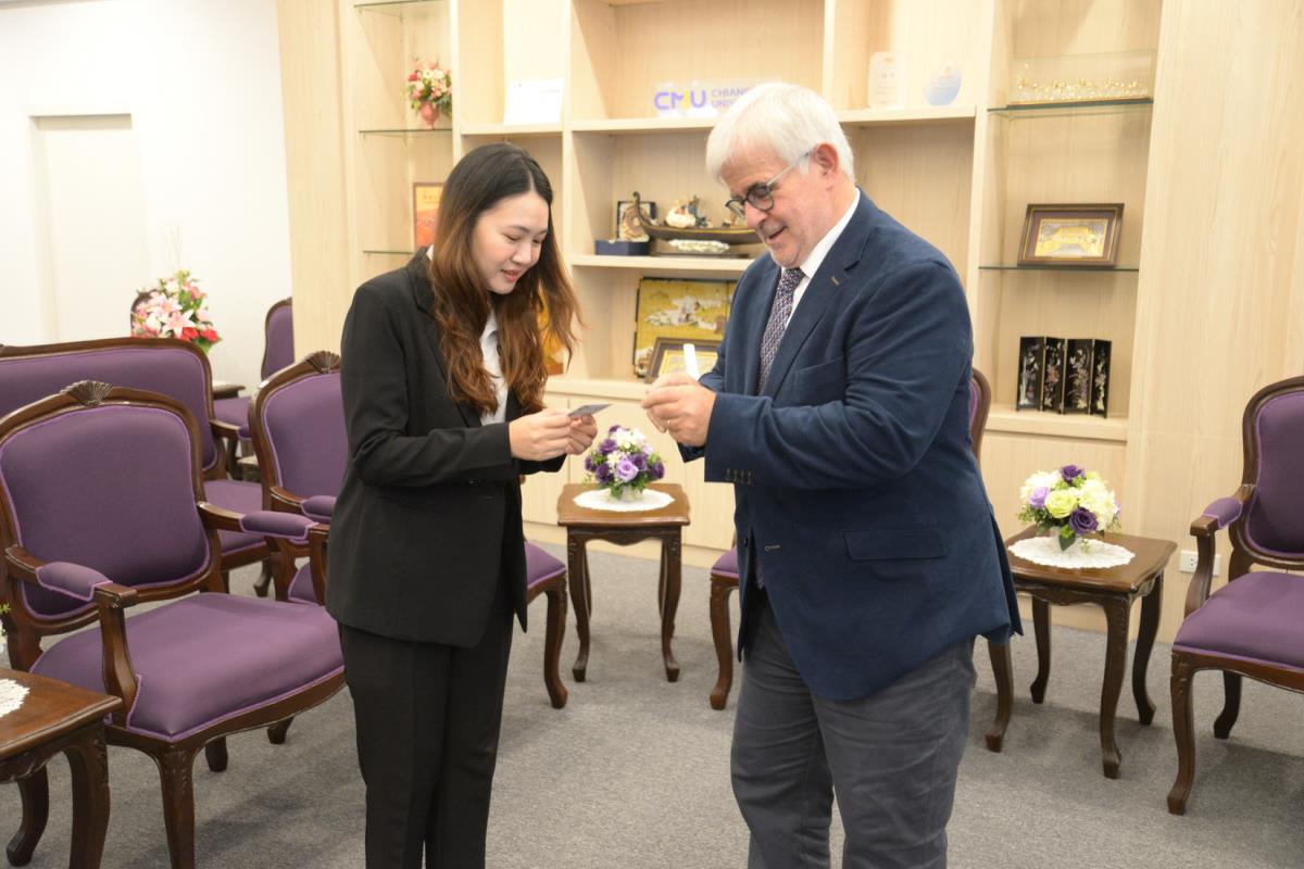 รองศาสตราจารย์ ดร.ปิยะพงศ์ เนียมทรัพย์ ผู้ช่วยศาสตราจารย์ ดร.ทพญ.วรกัญญา บูรณพัฒนา ผู้ช่วยอธิการบดี ผู้ช่วยศาสตราจารย์ ดร.รุจิรา อุ่นเจริญ คณบดีวิทยาลัยนานาชาตินวัตกรรมดิจิทัล และคณะผู้บริหารมหาวิทยาลัยเชียงใหม่ ให้การต้อนรับ Professor Tom Baum, Professor of Department of Work, Employment & Organization, Strathclyde Business School, University of Strathclyde สหราชอาณาจักรในโอกาสที่มาเยี่ยมเยือนมหาวิทยาลัยเชียงใหม่ เพื่อปรึกษาหารือและแลกเปลี่ยนข้อคิดเห็นเกี่ยวกับความร่วมมือทางวิชาการ ณ สำนักงานมหาวิทยาลัย มหาวิทยาลัยเชียงใหม่ วันจันทร์ที่ 30 กันยายน พ.ศ. 2567